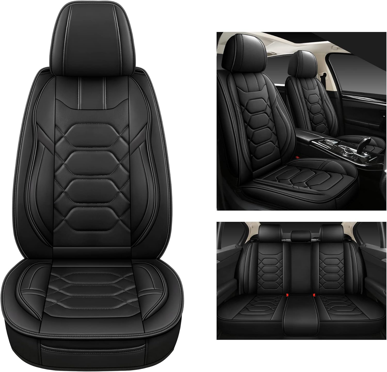 - Premium Material: Made of high-grade leatherette materials, Waterproof, Durable Wear-resistant and Easy to Clean. Protecting your car seats from damage, spill or stain in all directions. Equipped with thick, premium High-Density Foam to create top resilience for maximum comfort during your drive.