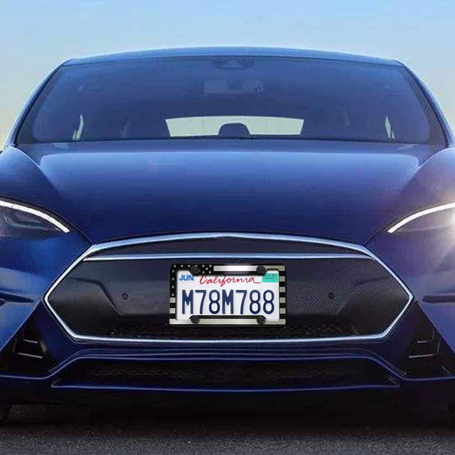 - Rattle Proof License Plate Frame - The black license plate holder set is equipped with a black foam shock-absorbing license plate pad, protect the car paint and reduce the rattle of the metal license plate. 2 Pack American Flag stickers with Thin Blue Line decal as bonus, 2.5" X 4.5", Weatherproof, UV & Water Resistant, easy to apply to any smooth surface. Perfect decal sticker for the decoration of Autos, SUVs, windows, bumpers, etc. Express your patriotism with personality