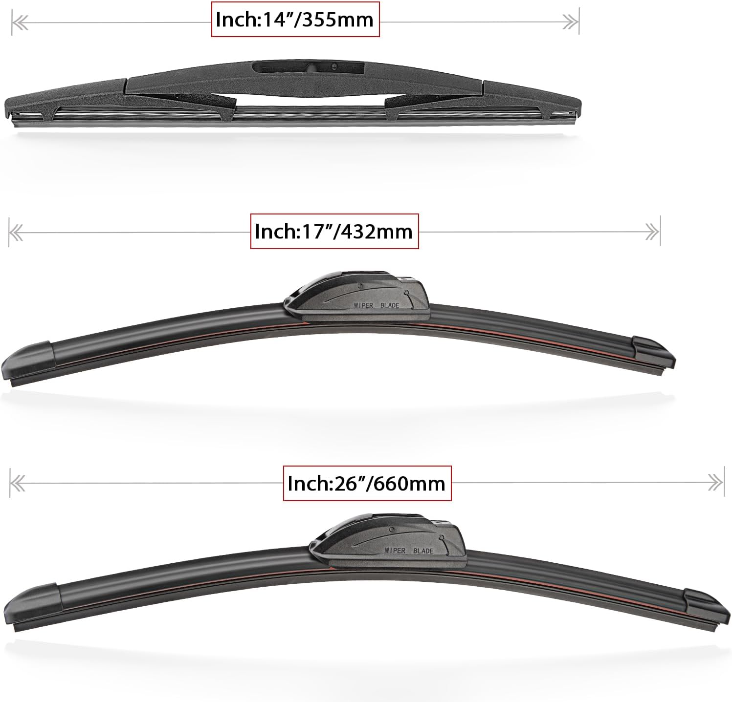 - {WIPER PERFORMANCE}: Natural rubber material making sure the wiping is the best, quiet wiping without judder or squeaking, resistant and a long service life.