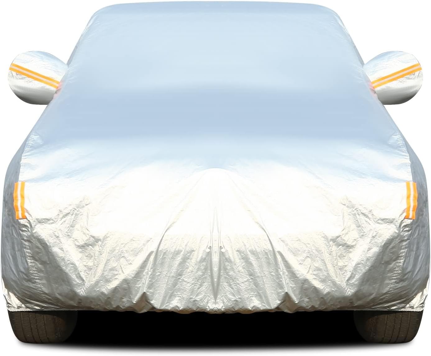 - 3 layers Upgraded Durable Material: Tecoom truck cover is made of high-density 190T multi-layer thick composite material. The truck cover waterproof all-weather high-reflective aluminum material has good sun protection and anti-UV, which can protect the vehicle from fading and keep the interior cool. PE&PEVA is 100% waterproof, rainproof, snowproof and freezeproof. Built-in soft thick cotton fleece lining protects car paint.