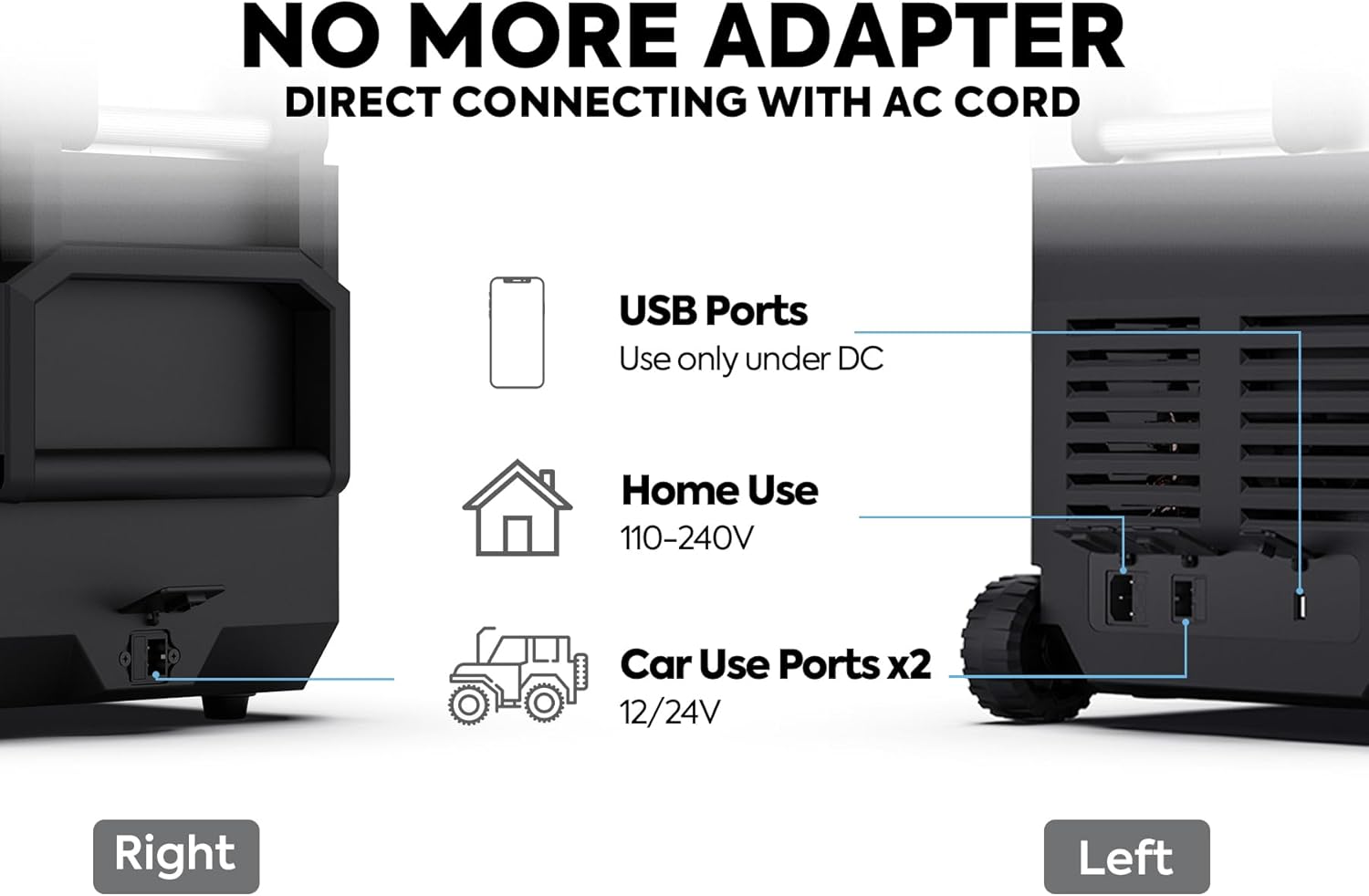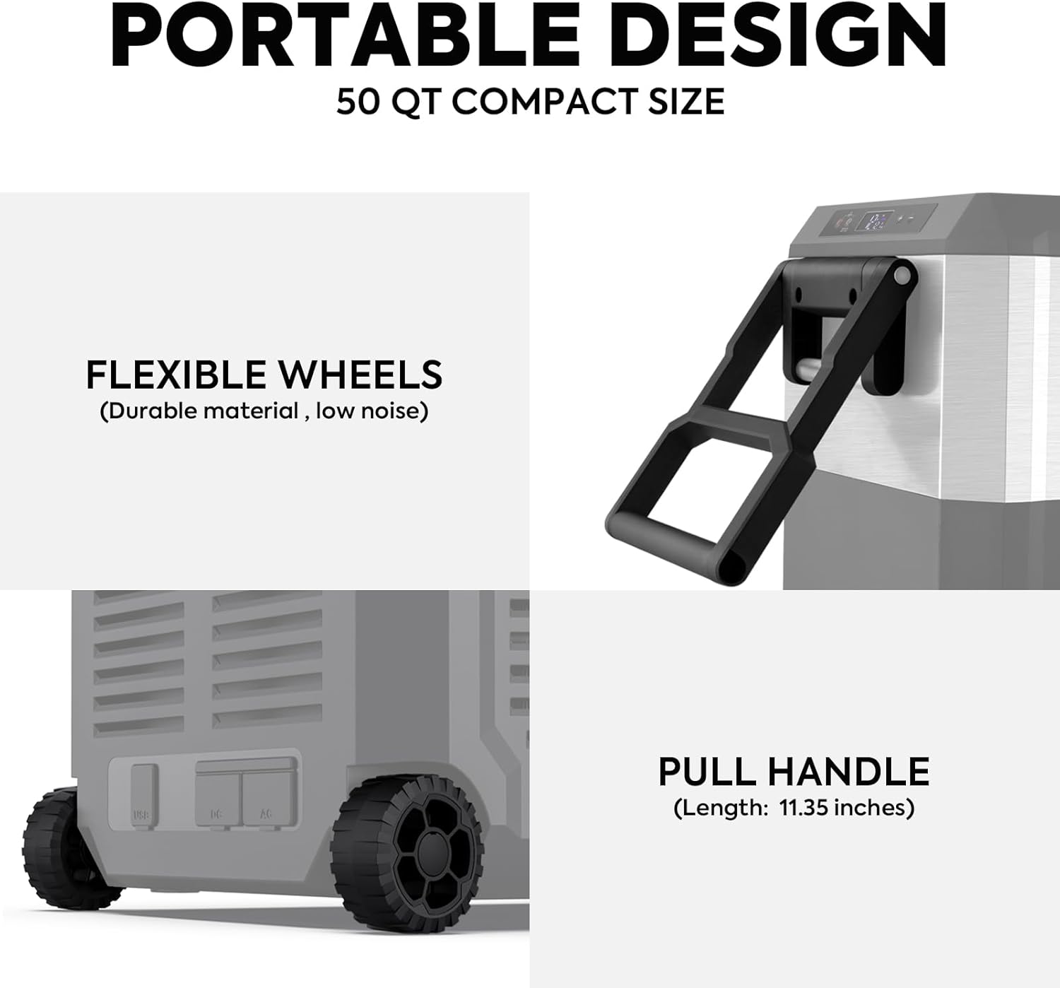 - Value Pack And User-friendly Design - You will get a JP50PRO portable car fridge,1 protective cover,1 wired basket,1 AC cable, and 1 DC cable.The JP Pro Car Refrigerator also comes with a pull bar, wheels, and a stand to prevent sliding. The portable design better meets your freezing needs on the go and is definitely the best companion for your camping trips.
