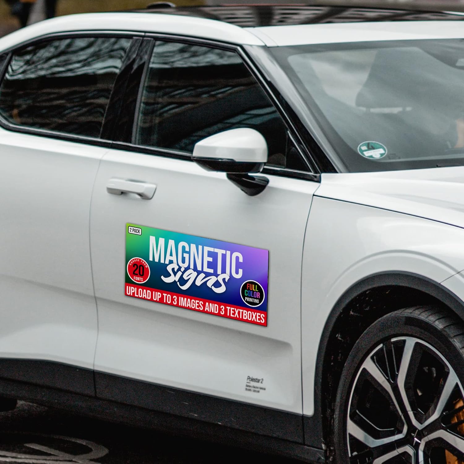 - CUSTOM CAR MAGNET - Promote your business on the go with our 12"x24" custom car magnets. Personalize with your logo, text, or design. These magnetic signs are great for branding cars, trucks, trailers, and storefront doors.