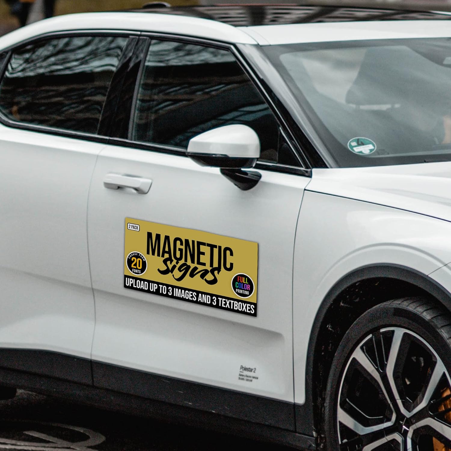 - STRONG AND DURABLE - With our customizable car sign, you will be able to take advantage of a new way to advertise your brand or business. These business magnets for cars, trucks and trailers are built to last. Our custom vinyl banner is weatherproof and will surely last long through all kinds of weather conditions.