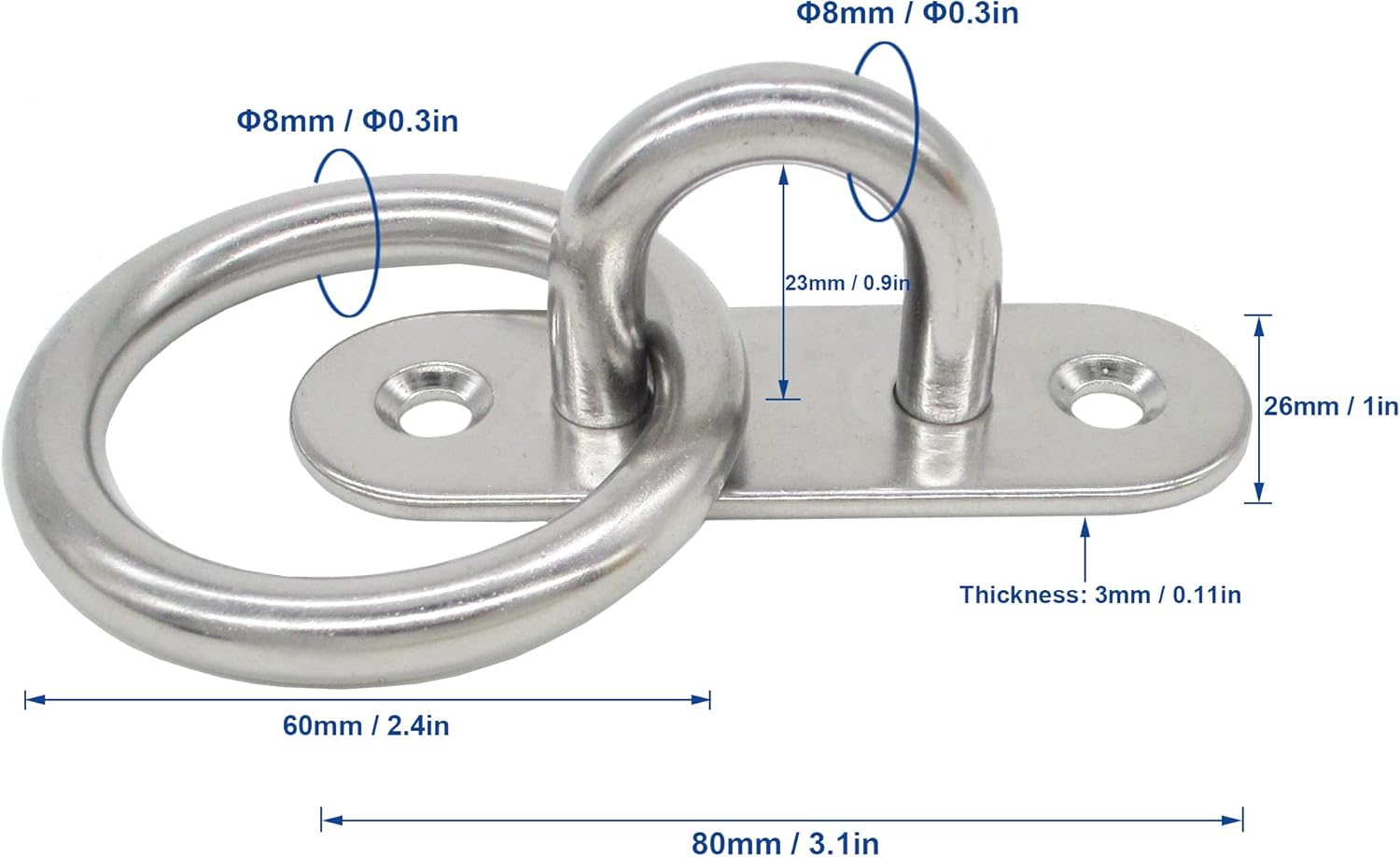 Stainless Steel Ceiling Hooks & Wall Hangers with Rings - Heavy Duty M8 Screw Mount, Rust-Proof Anchor Straps for Garage, Outdoor, Storage (4-Pack)