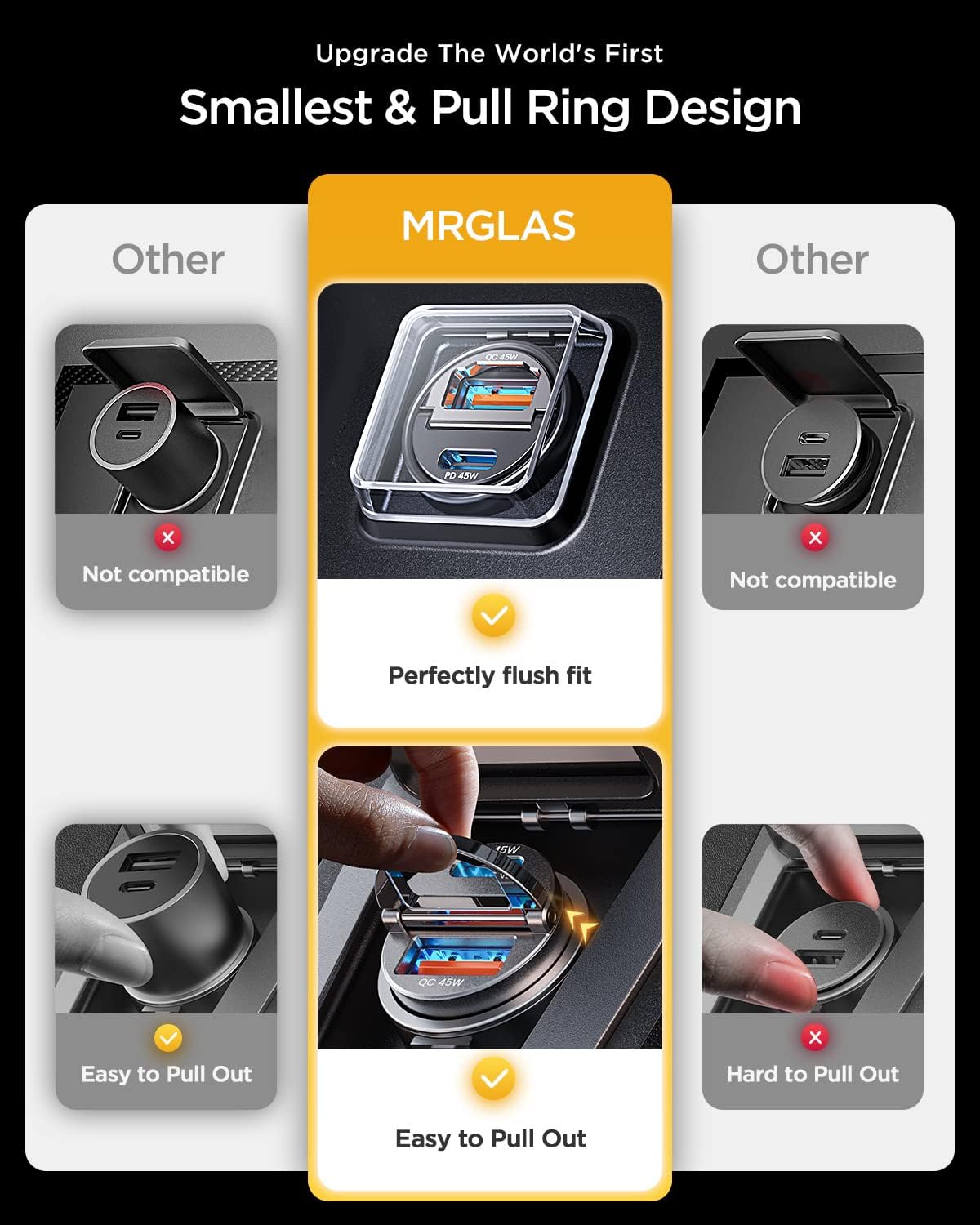 - ⚡OFFICIALLY APPROVED PD45W+QC45W & DUAL PD45W FAST CHARGING: MRGLAS 90W fast USB C car charger supporting PD 45W(usb-c port) and QC 45W(usb-a port) high output, can fast charge all prevailing phones/iPad/tablet at the same time. Makes the IPhone 14 Pro Max and Samsung Galaxy S22 charging time from 0% to 88% in 30 minutes.
