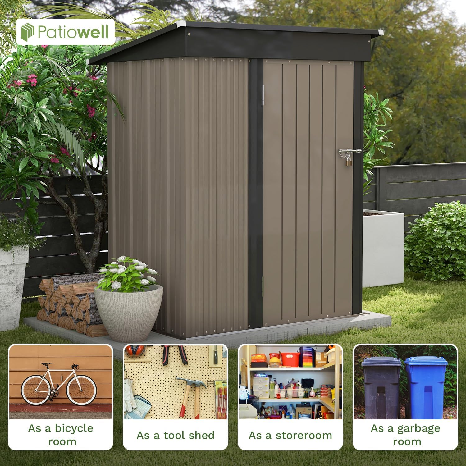 - Multiple Uses: The Patiowell compact storage room is versatile, fitting perfectly in your backyard, garden, or anywhere you need. It can be utilized as a storage room or tool room, to keep your yard tidy