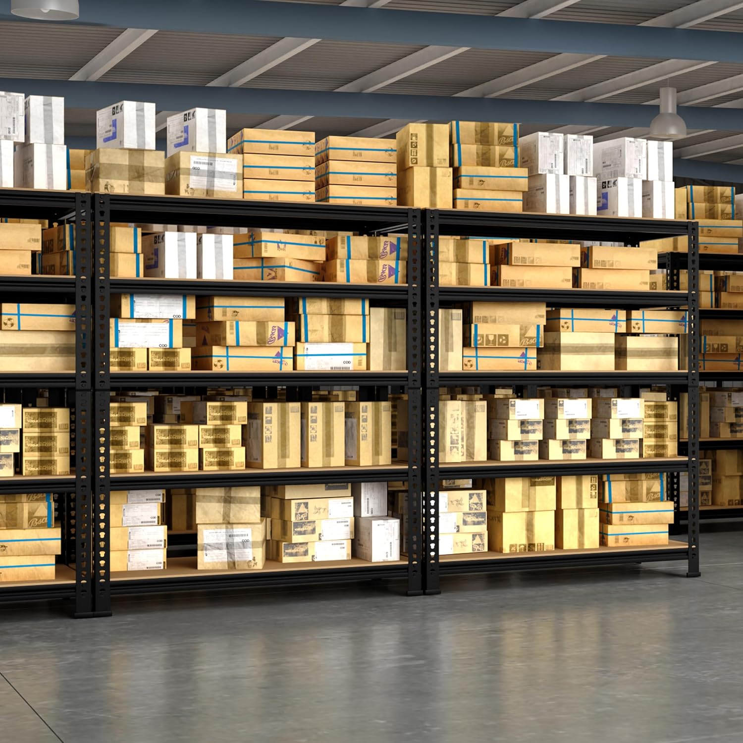 5-Shelf Heavy Duty Shelving - Adjustable Garage Storage Shelves, Metal Utility Storage Racks for Warehouse Pantry Basement Kitchen, Garage Organizers Shef Unit, Black, Packs of 4
