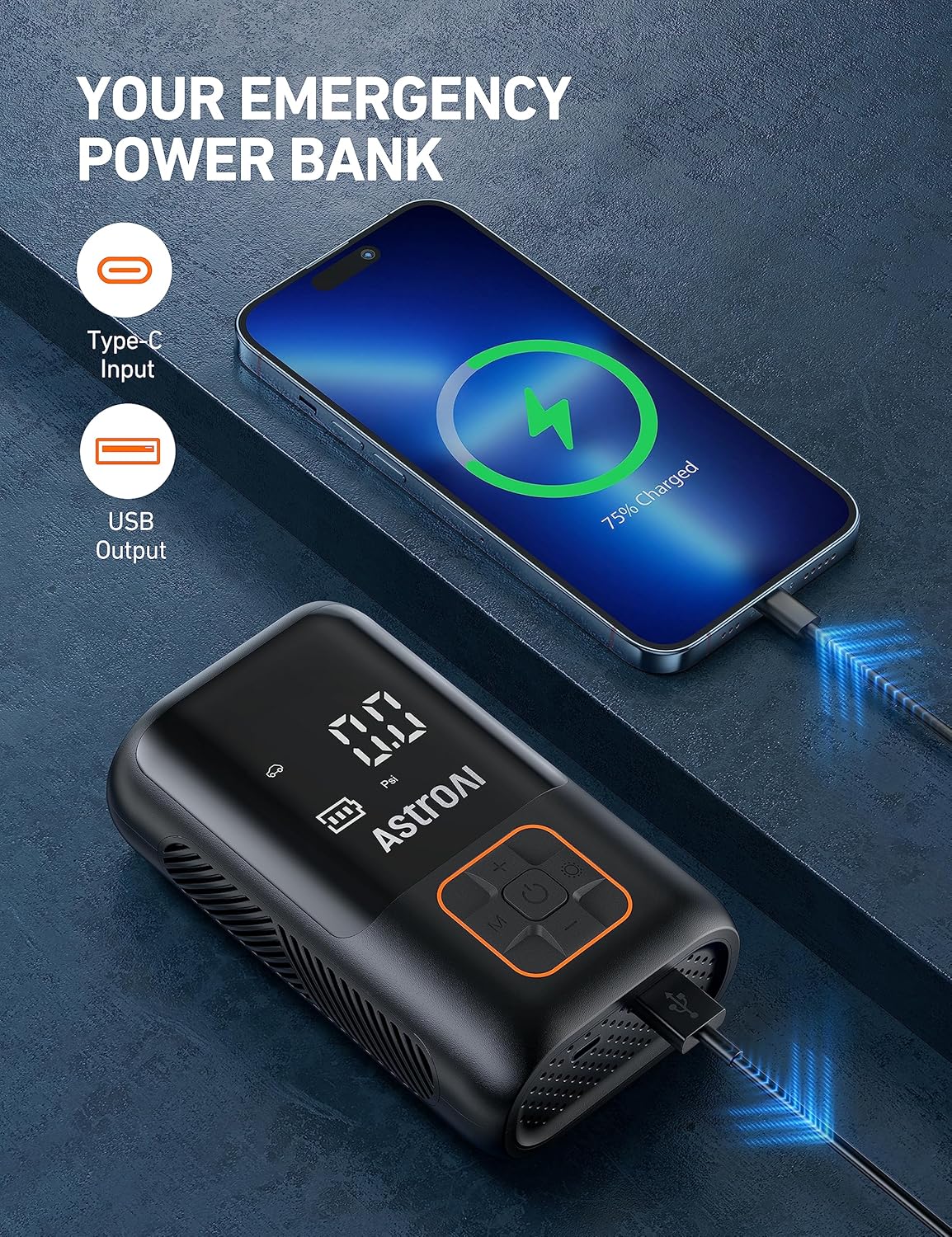 - Battery & DC Power: The air pump uses a dual-power design, switching freely between cordless and power supply. The built-in battery provides cordless inflation while the included 3-meter DC power cord can power the pump when the battery runs out. Make sure your inflation won’t be interrupted by a power shortage. Meet all your daily inflation needs anytime, anywhere. (Please note: It comes with a USB-A to Type-C charging cable. The compatible charging adapter (5V 2A) is not included.)