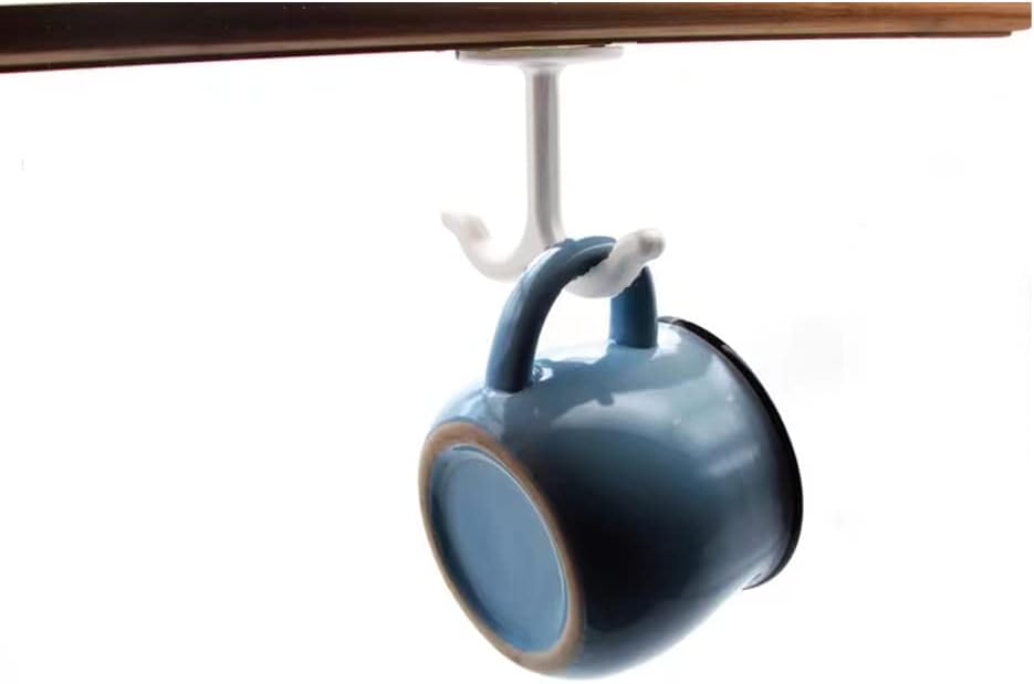 10 Pcs Zinc Alloy Ceiling Double Hook Cabinet Wardrobe Coat Towel Hat Hook Hooks Under Cabinet Shelf (White)