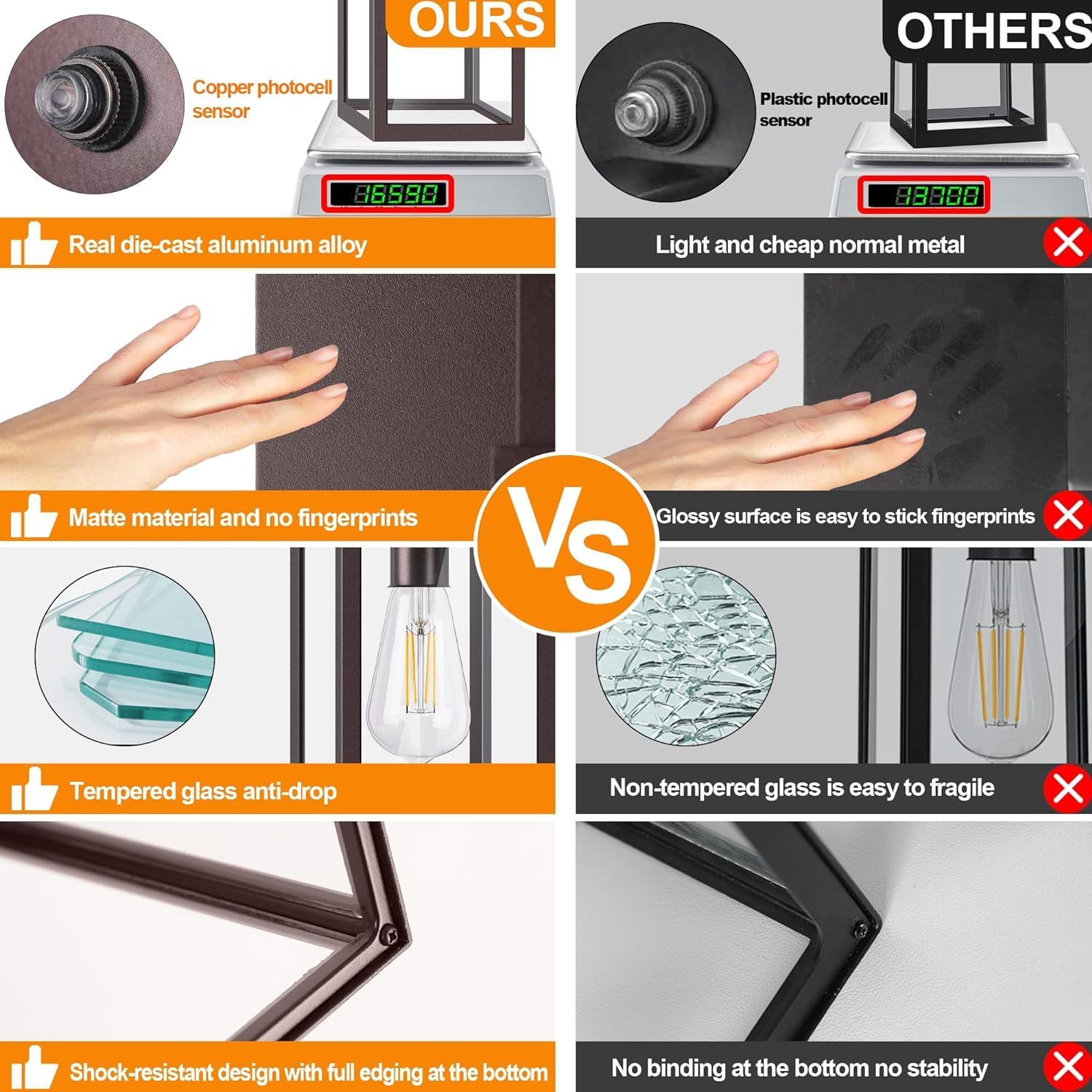 - đăAnti-Rust & Weather ResistanceăMade of the heavy-duty die-cast aluminum alloy, our exterior light fixtures is high waterproof rated, seamless connection, anti-rust, and anti-corrosion. No matter rain or snow, ultra-high or low temperatures, this dusk to dawn outdoor lighting can still keep stylish looking after years of using, no worries about the aging problem.