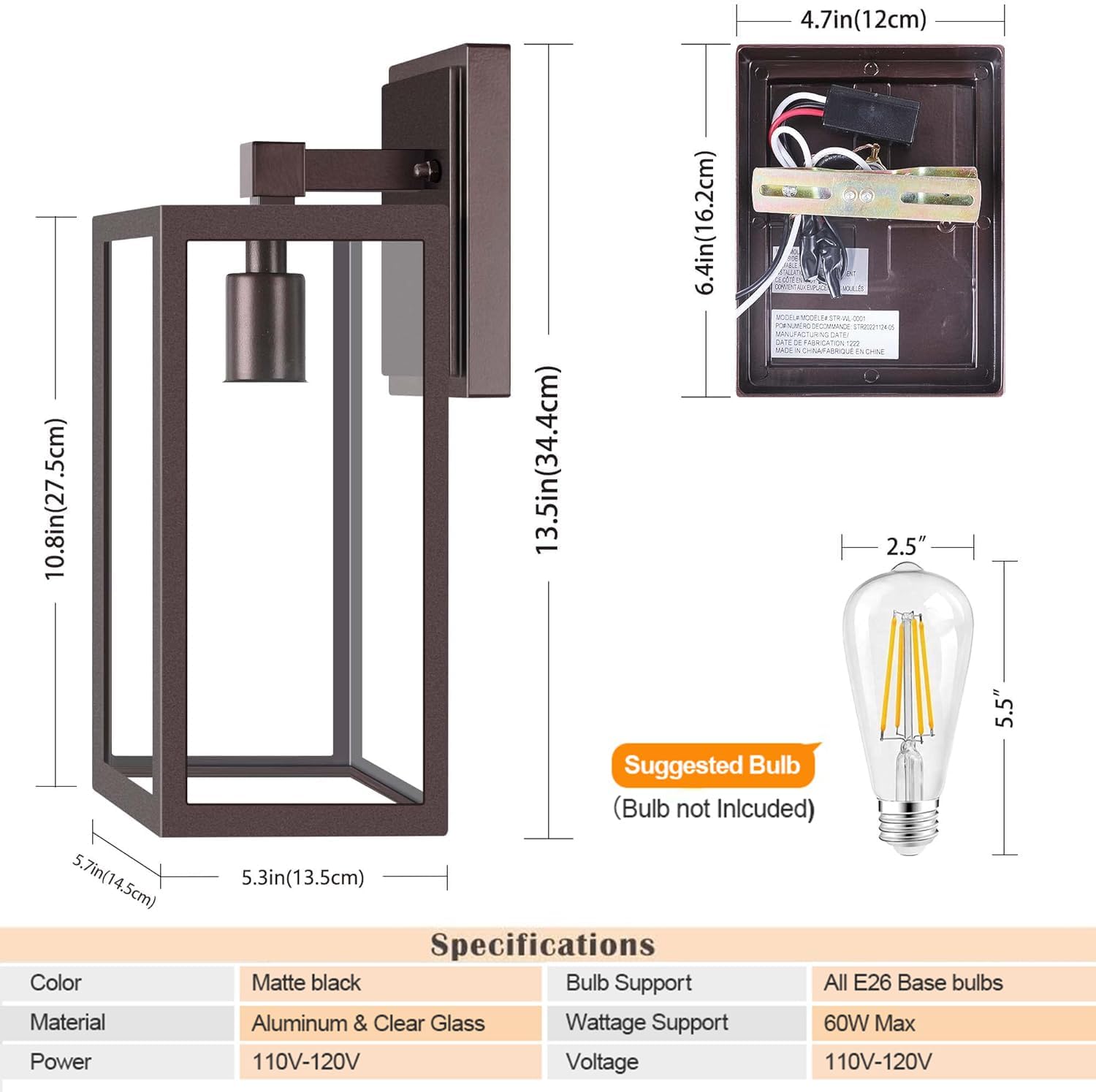 - đăE26 BaseăOur wall lantern is compatible with all E26 base bulbs, which wattage is not more than 60W. Including LED, CFL, incandescent, halogen, etc...You can choose different bulbs by your preference to create different lighting atmospheres for your family. (Note: Bulb not included)