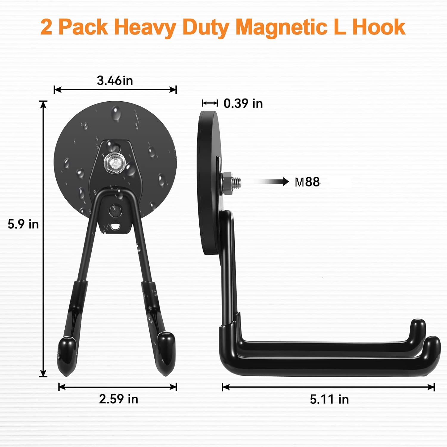 - Magnetic tool holder: The industrial magnetic garage hooks are made of thick steel, and the L-shaped double hook design makes the magnet hooks load-bearing and more balanced and sturdy than ordinary single hooks.The dual hooks and high weight capacity will surely also work for many power tools.