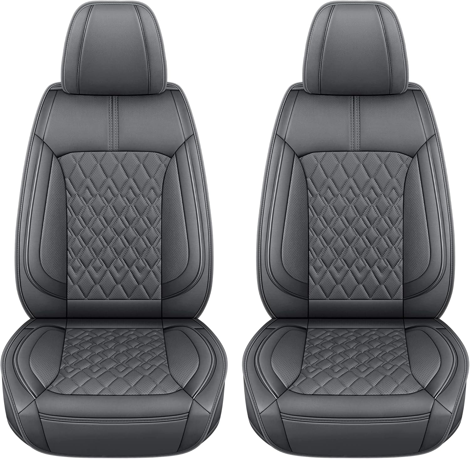 Pariitadin Leather Car Seat Covers Front Pair, Waterproof Breathable Faux Leather Automotive Seat Covers for Cars, Non-Slip Car Interior Covers Universal Fit Most Cars Sedans Trucks SUVs, Gray