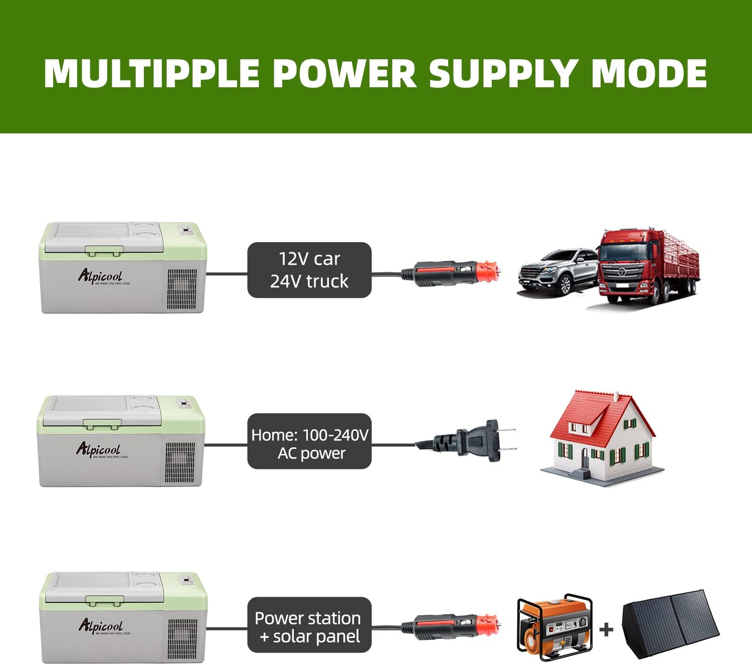 - CONVENIENT TO TRAVEL:Weight 18.51lbs,the external dimension is 23.5*12.6*10.2 inches.Two sides build-in handle, it is easy to transport.Our Alpicool car fridge can be applied for truck ,vehicle,RV road trip ,fishing and other outdoor activities.