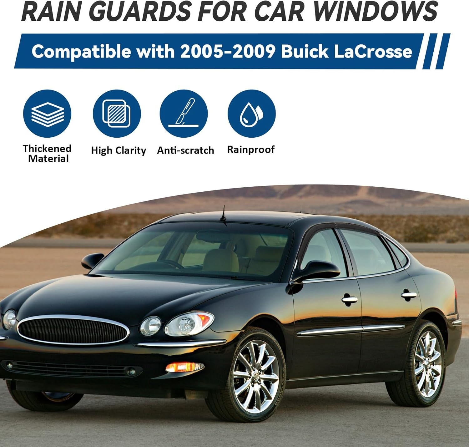 4pcs Window Visors Compatible with 2005-2009 Buick Lacrosse Front+Rear Smoke Tint Sun/Rain Guard Outside Mount Tape-On Vent 2006 2007 2008
