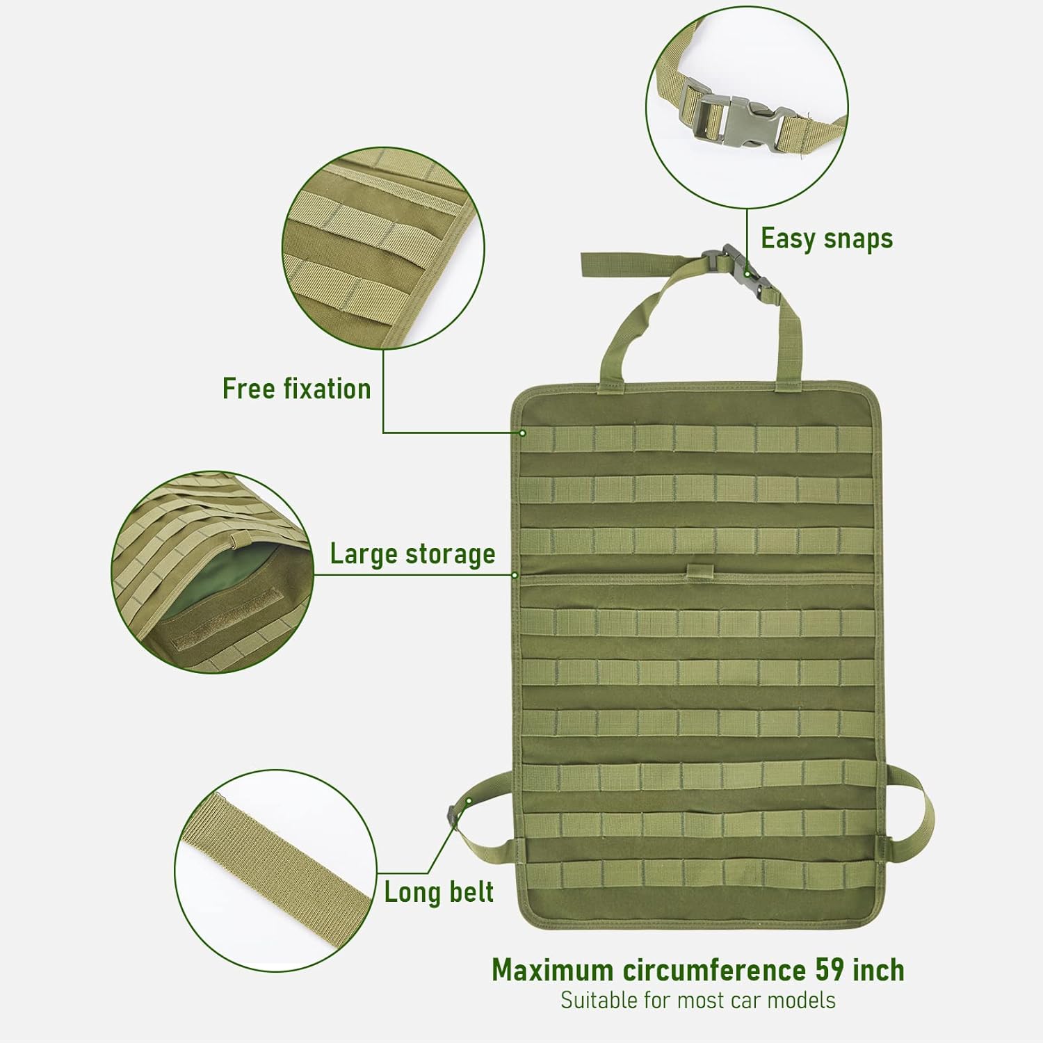 - ๐ Multifunctional Storage - Design with 5 Molle bags on the back to help you store tactical gear & personal items and save space. Difference sizes of Molle bags help you classify your items so easily.you can set the Tactical Seat โBack Organizer according to your own habits and need.