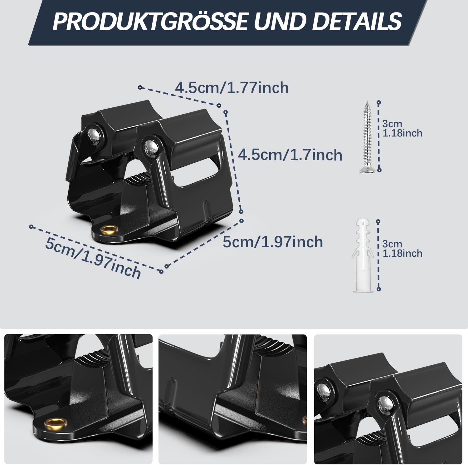 - NON-Slip Design:Can hold up to 9 LB heavy duty garden hand tools firmly to stay in the clip. Rubber gripper can keep tool handles from slipping through the clip and prevent scratch/scrape marks on handles. With broom hanger wall mount adjustable triangular clips that accommodate different handle thicknesses, this broom holder wall mount can securely hold brooms, mops, garden tools, sporting goods, and more, keeping your living spaces tidy.