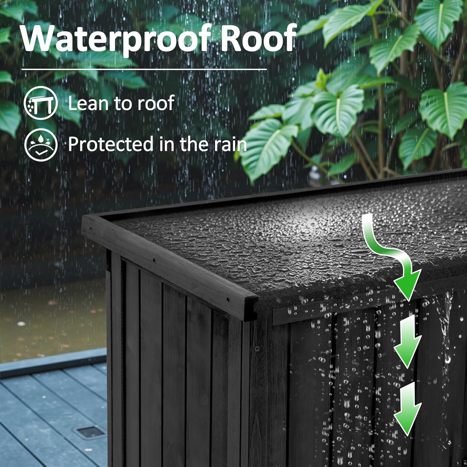 - Waterproof Roof: The sloping asphalt roof is not only waterproof but also avoids water accumulation, prolonging the life of the patio cabinet storage waterproof.