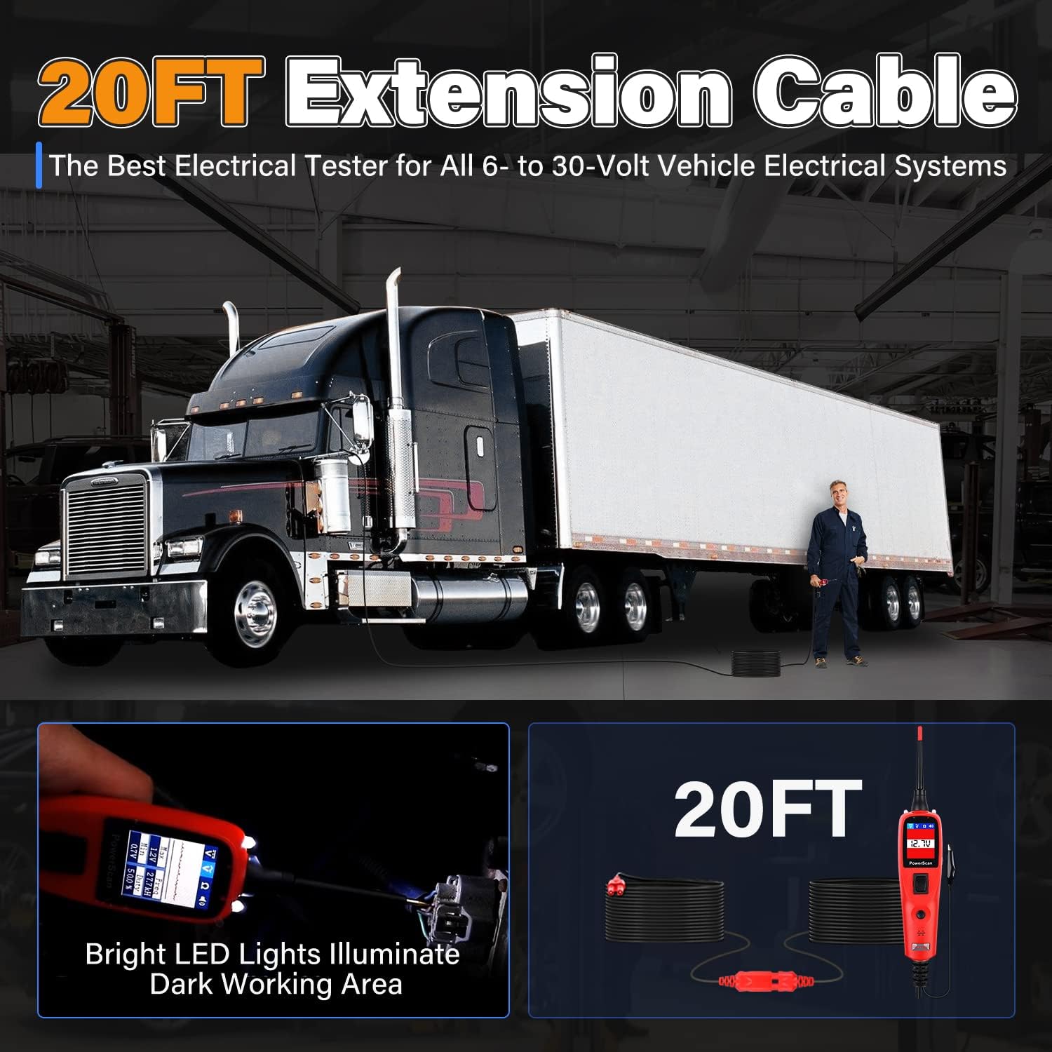 - đă20FT Extension Cable & Cigarett.e lighter plugâConvenientăUnlike the power probe, Autel PS100 Automotive Power Circuit Probe Tester comes with 20 feet long cord plus 20 feet extension cord. Combining the feature that it can be powered by the ci*gare.tte li*ghter, and alligator clip for convenient ground connection, you can test electrical circuit system anywhere around the longer vehicles and trailers. Extra cigarette lighter plug, no need to open the hood to connect the battery, so you can easily and quickly conduct in-vehicle circuit testing