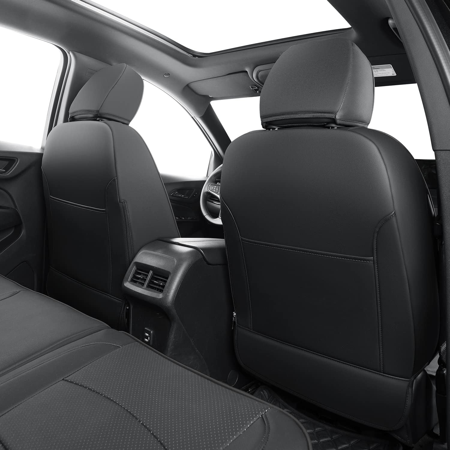 RISINGSTAR Terrain Seat Covers, fit for 2018-2024 GMC Terrain SUV with Rear Split Seats, Water Proof Faux Leather(Full Set, Black)