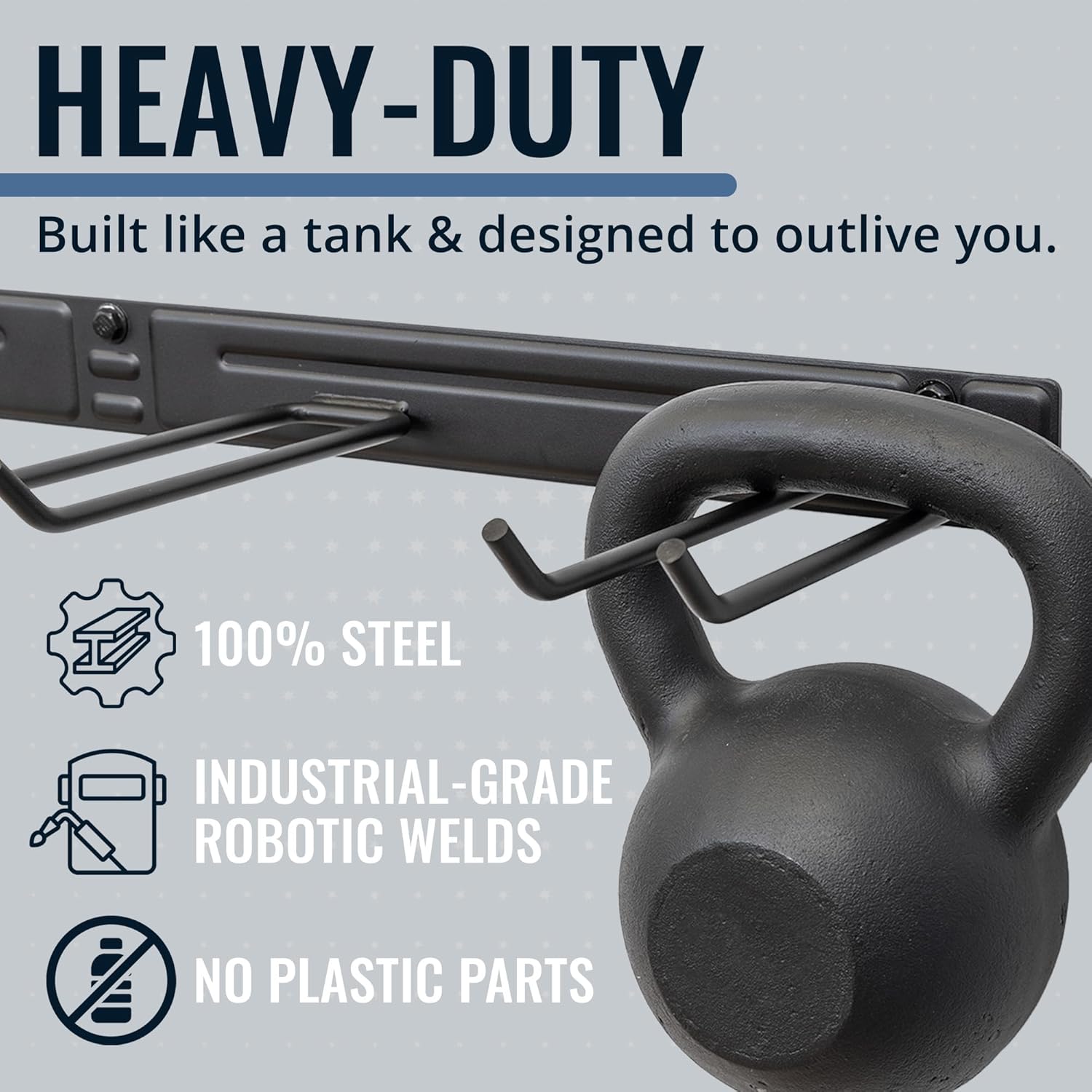 - ULTRA-STRONG & BUILT TO LAST – Made from 100% solid steel with no plastic parts or assembly required, this tool rack is crafted to withstand heavy-duty use. Each wall-mounted storage rack arrives fully welded and powder-coated to resist rust and corrosion. Perfect for organizing tools, outdoor storage gear, or even a fishing pole rack for the garage.