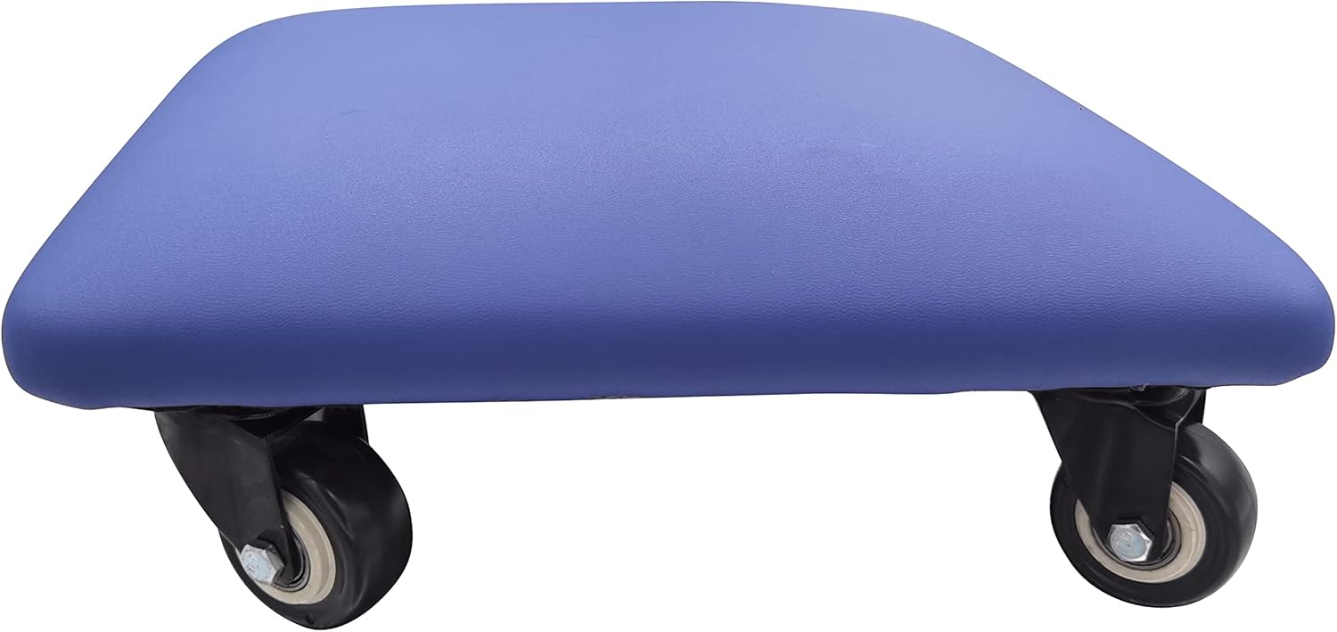 Roller Seat 360 Degree Rotating Low Stool with Wheel Chair PU Leather Universal Swivel Wheels Stool for Home Office Fitness and Garage (Square Blue)