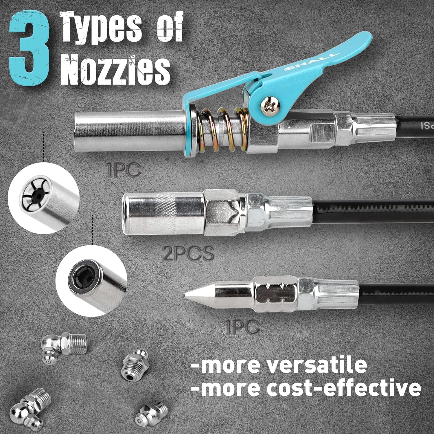 - Robust Build Quality: SHALL pistol grip grease gun is constructed of premium quality durable die cast aluminum, guaranteeing a 7000 PSI Max working pressure and leakage-free performance