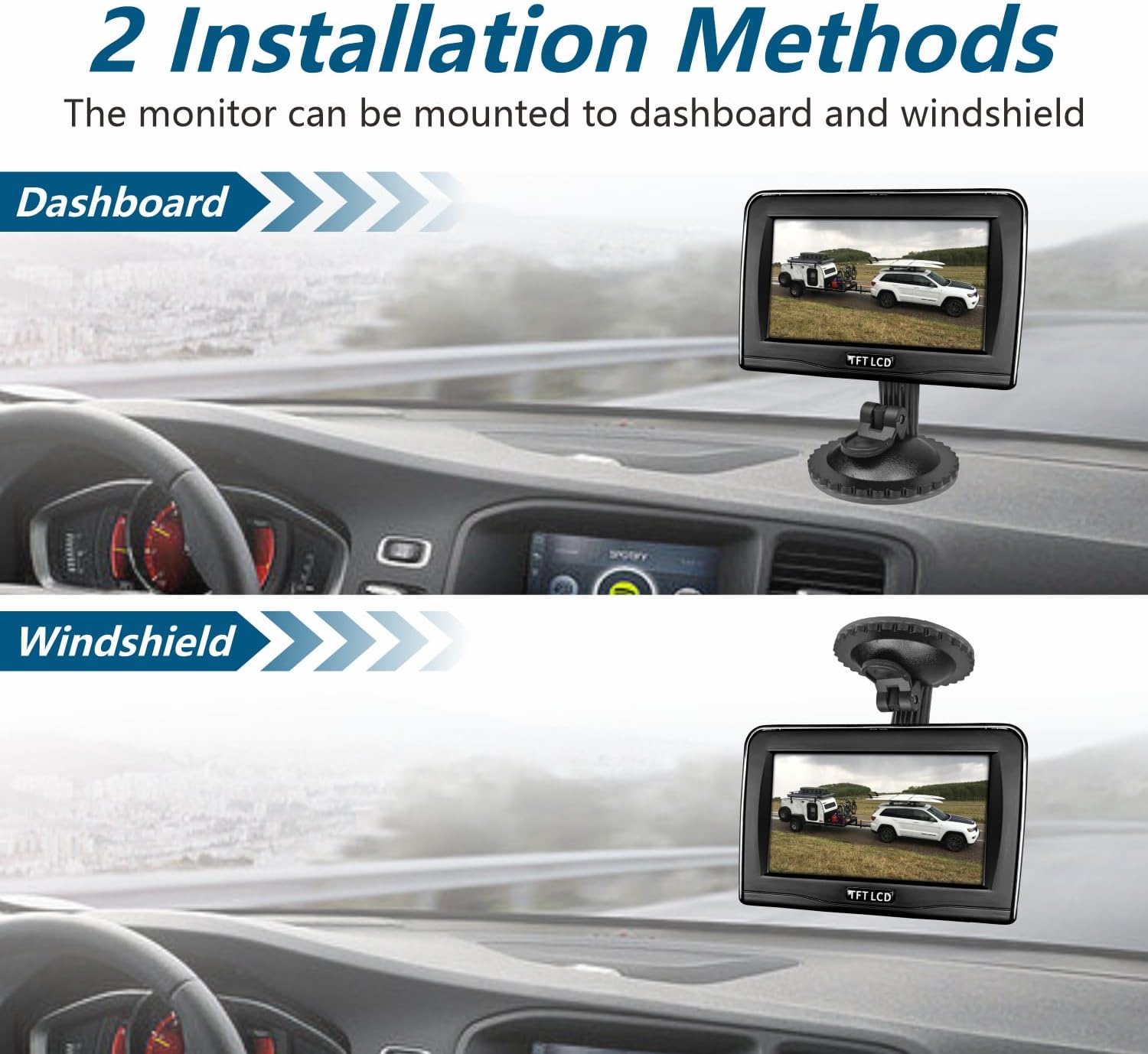 - HD Image And Super Night Vision---Equipped with high-definition color CMOS sensor, this backup system for car can provide clearer picture and better reversing experience. 12 infrared night vision lights give a visibility of 30 feet in the dark.
