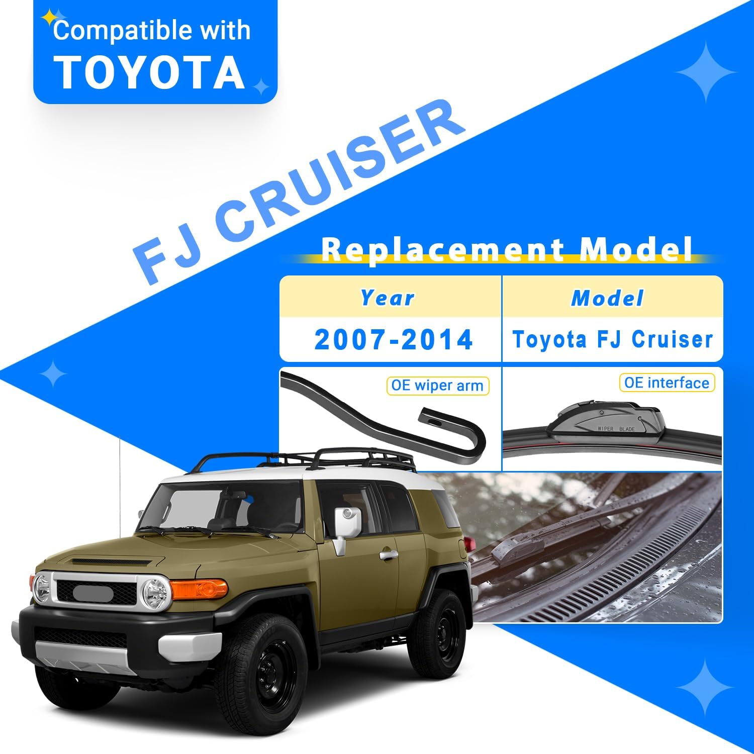 - {FITMENT}: Replacement for 2007 2008 2009 2010 2011 2012 2013 2014 Toyota FJ Cruiser 16inch + 14inch + 14inch front with 10inch rear windshield wiper blades.