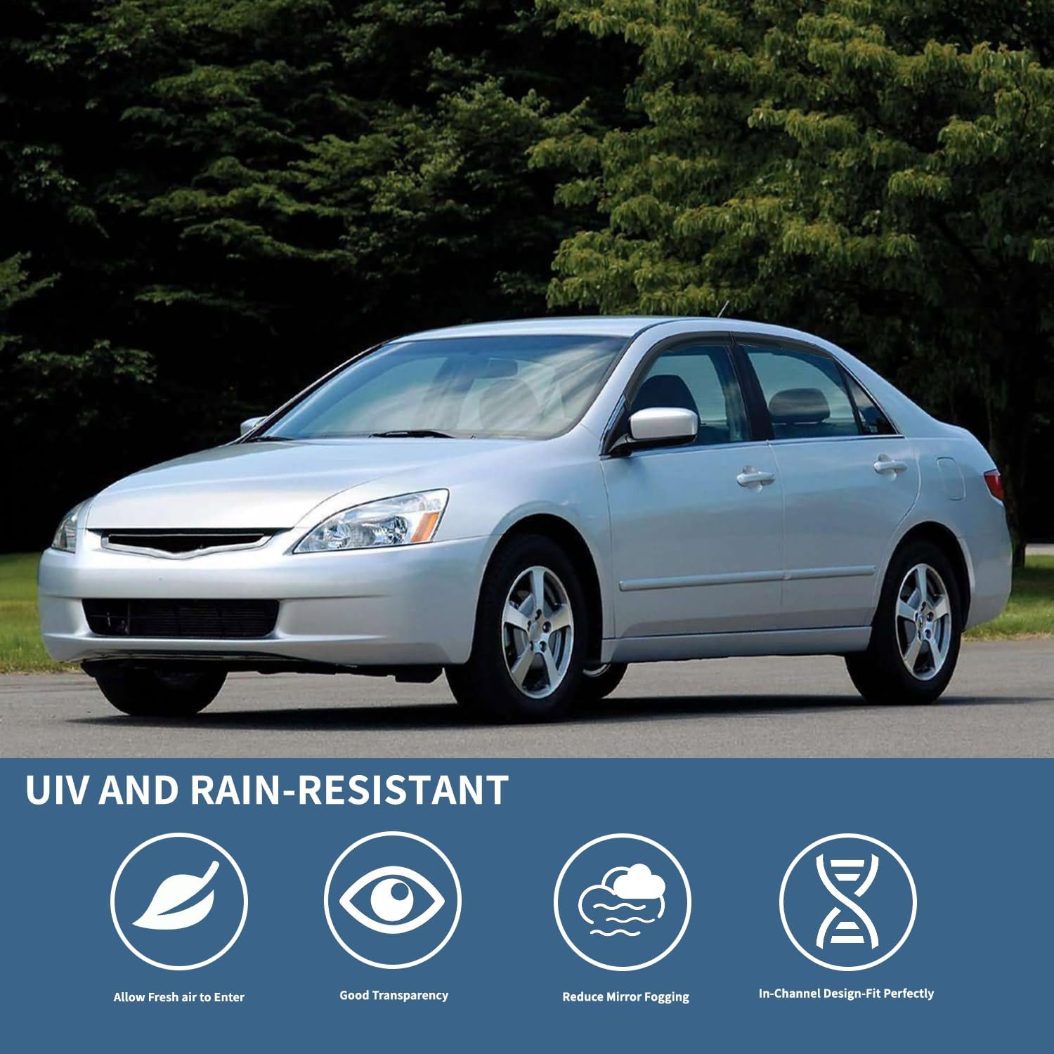 - 【SPECIFIC FITMENT】: 4pcs sun rain snow guard wind deflector vent shade side window visors compatible with Honda accord 2003 2004 2005 2006 2007 (03-07) 4d/4dr sedan model. Please check your vehicle's compatibility to ensure proper fitment