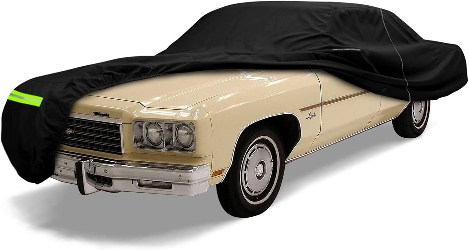 Waterproof Car Cover Compatible with Chevrolet Impala/Bel Air/Biscayne 1971-1976 2 & 4-Door Sedan/Couple/Hardtop 210T All Weather Classic Car Covers with Zipper Door for Snow Rain Protection