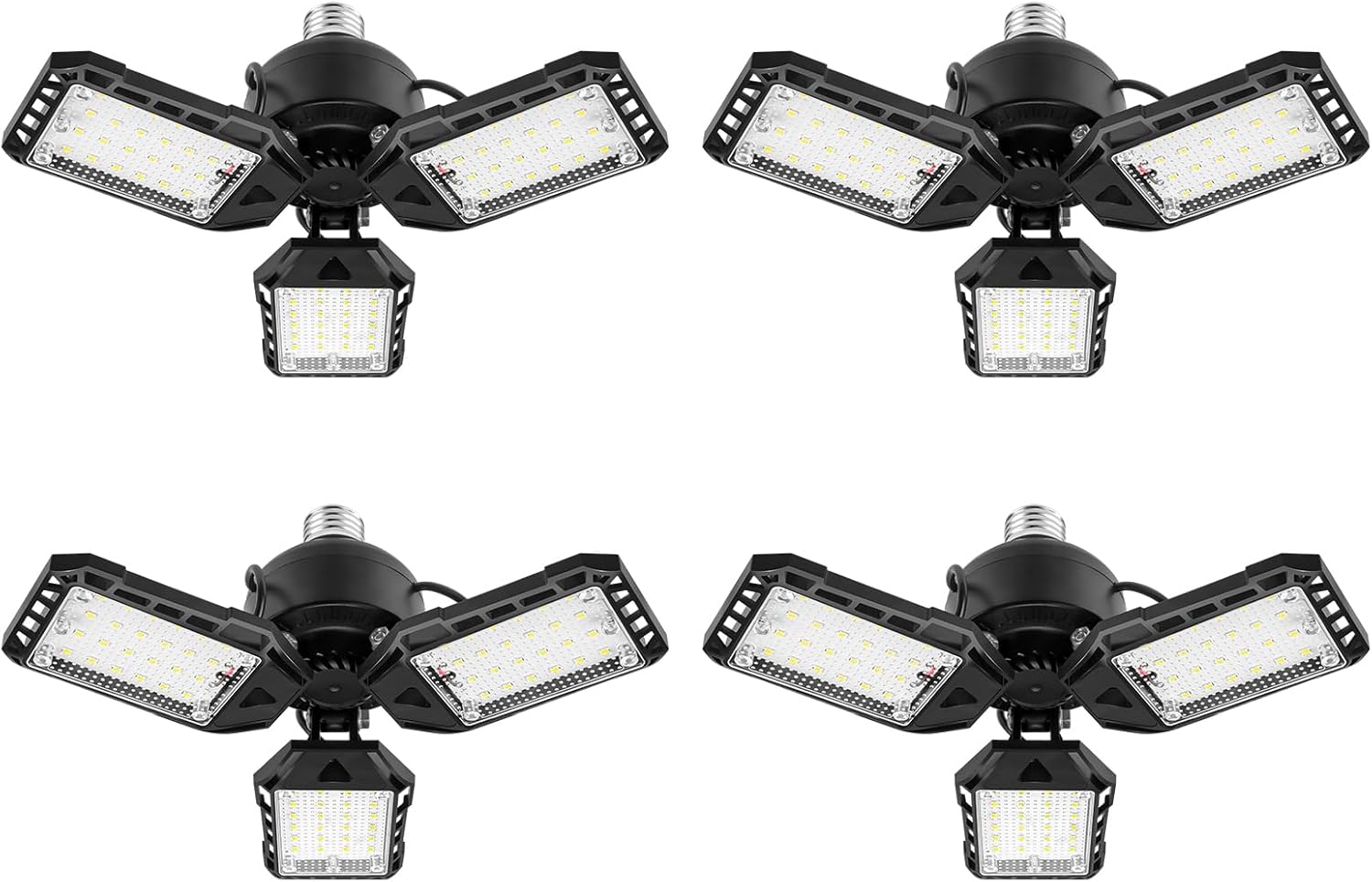 LED Garage Lights Bulb 4 Pack -80W, 8000LM 6500K Led Shop Light with 3 Deformable Panels, Basement Barn Light Garage Ceiling Lights, E26/E27 for Garage, Warehouse, Shop, Basement