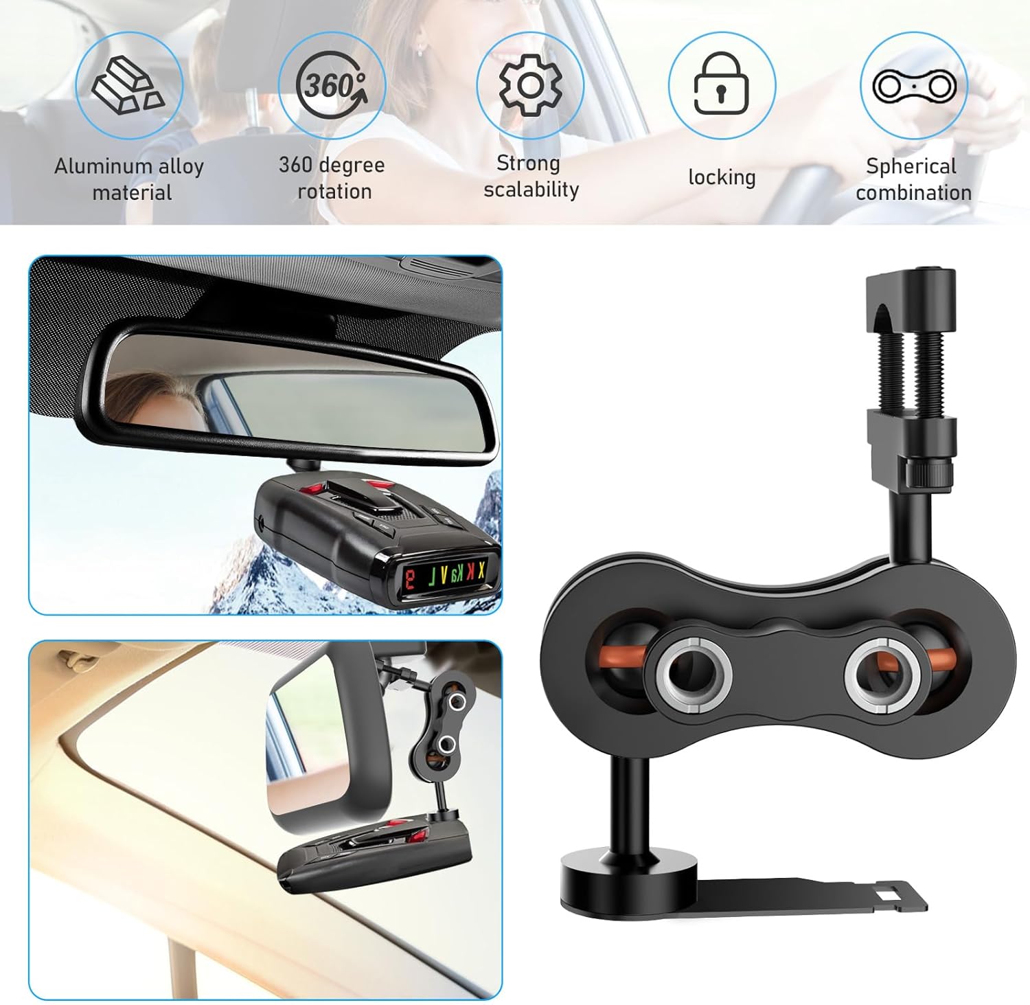- Radar detector rearview mirror rod bracket is made of all aluminum alloy material,which is durable