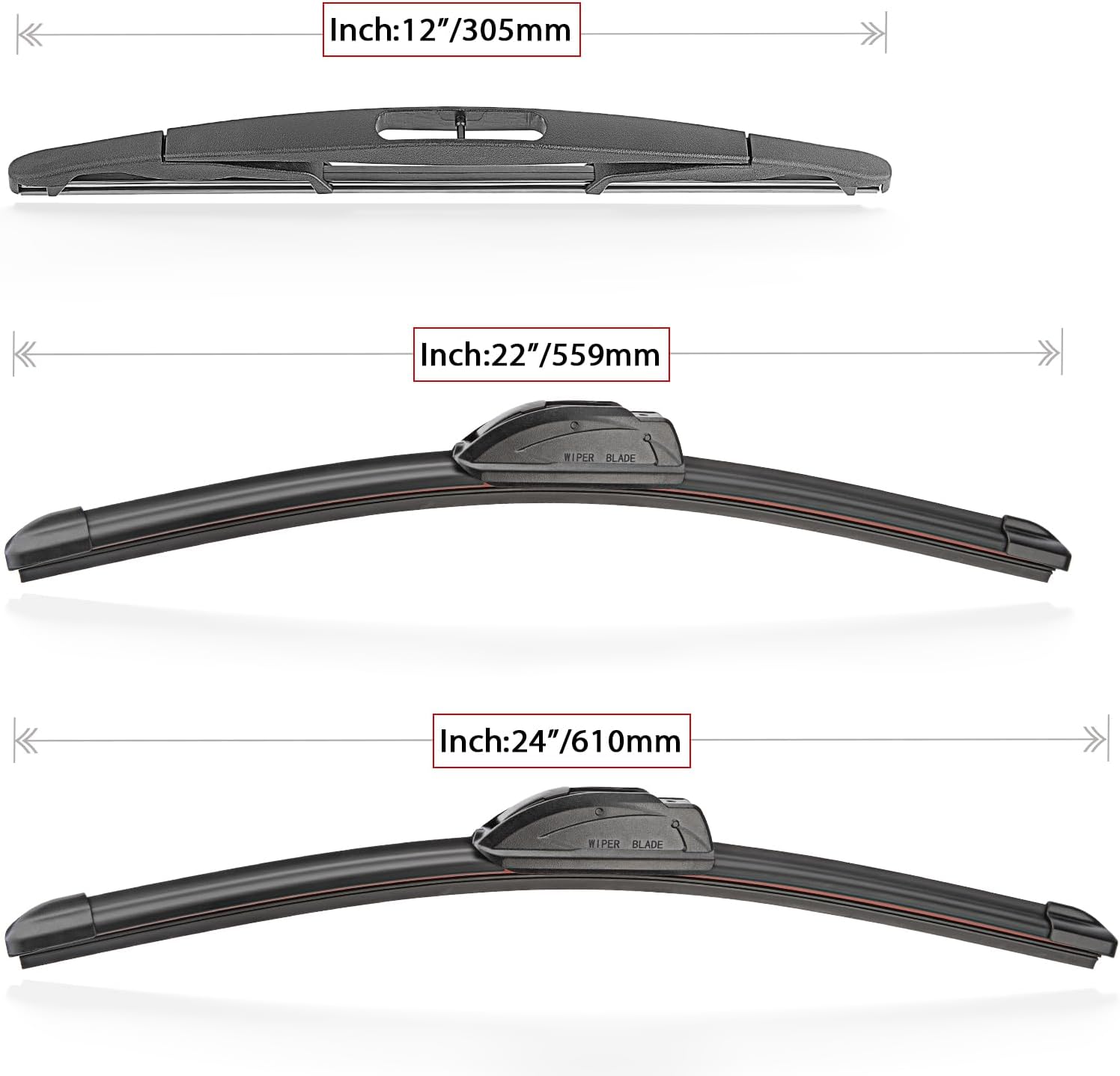 - {FITMENT}: Replacement for 2009 2010 2011 2012 2013 2014 2015 2016 2017 2018 2019 Ford Flex 24inch + 22inch front with 12inch rear windshield wiper blades.