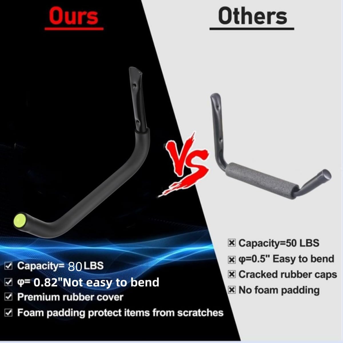 - 【 PERFECT STORAGE FOR LARGE ITEMS 】 This kayak wall mount can save more space for your garage, garden and warehouse. High-quality storage hooks can hold a variety of large tools, suitable for storage of large items such as shovels, canoes, kayaks, snowboards, ladders, tools and wood.