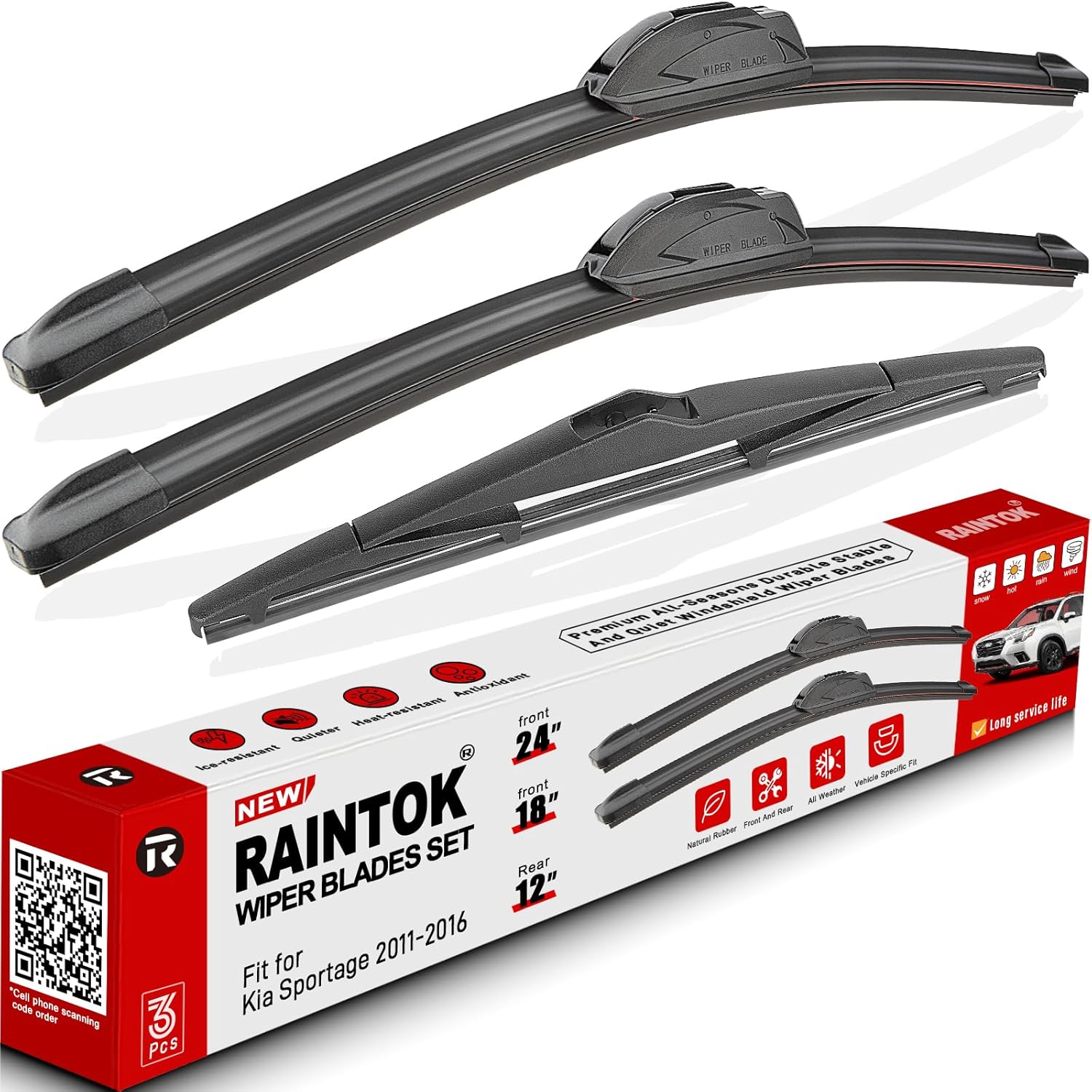 - {FITMENT}: Replacement for 2011 2012 2013 2014 2015 2016 Kia Sportage 24inch + 18inch front with 12inch rear windshield wiper blades.
