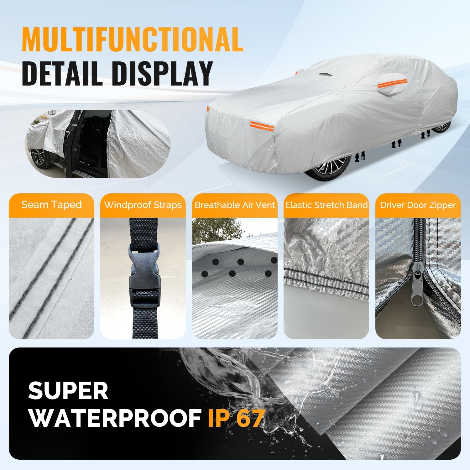 - Coverage : Full exterior coverage for cars (Sedans with length 191"-200")