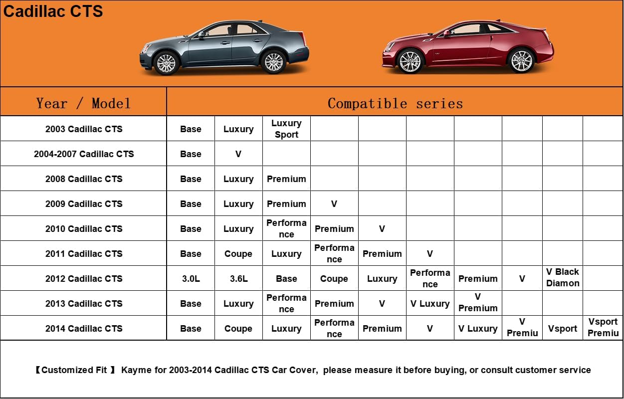 - 【Suitable for】— Custom fit for Cadillac CTS (2003-2014) . Come with a large enough portable bag to store your cover when you do not use