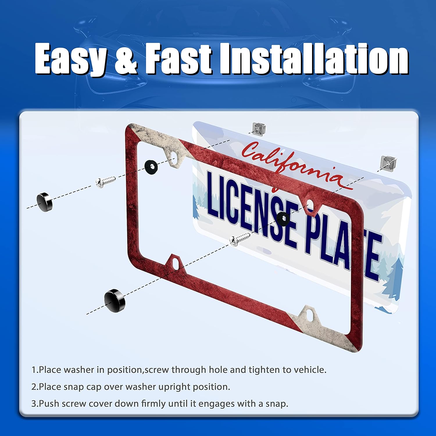 - Size: suitable for US Canada standard size 12.3" x 6.3" , All Accessories Needed are Included ( Screw Caps,Screws,Washers),Quick and Simple Installation