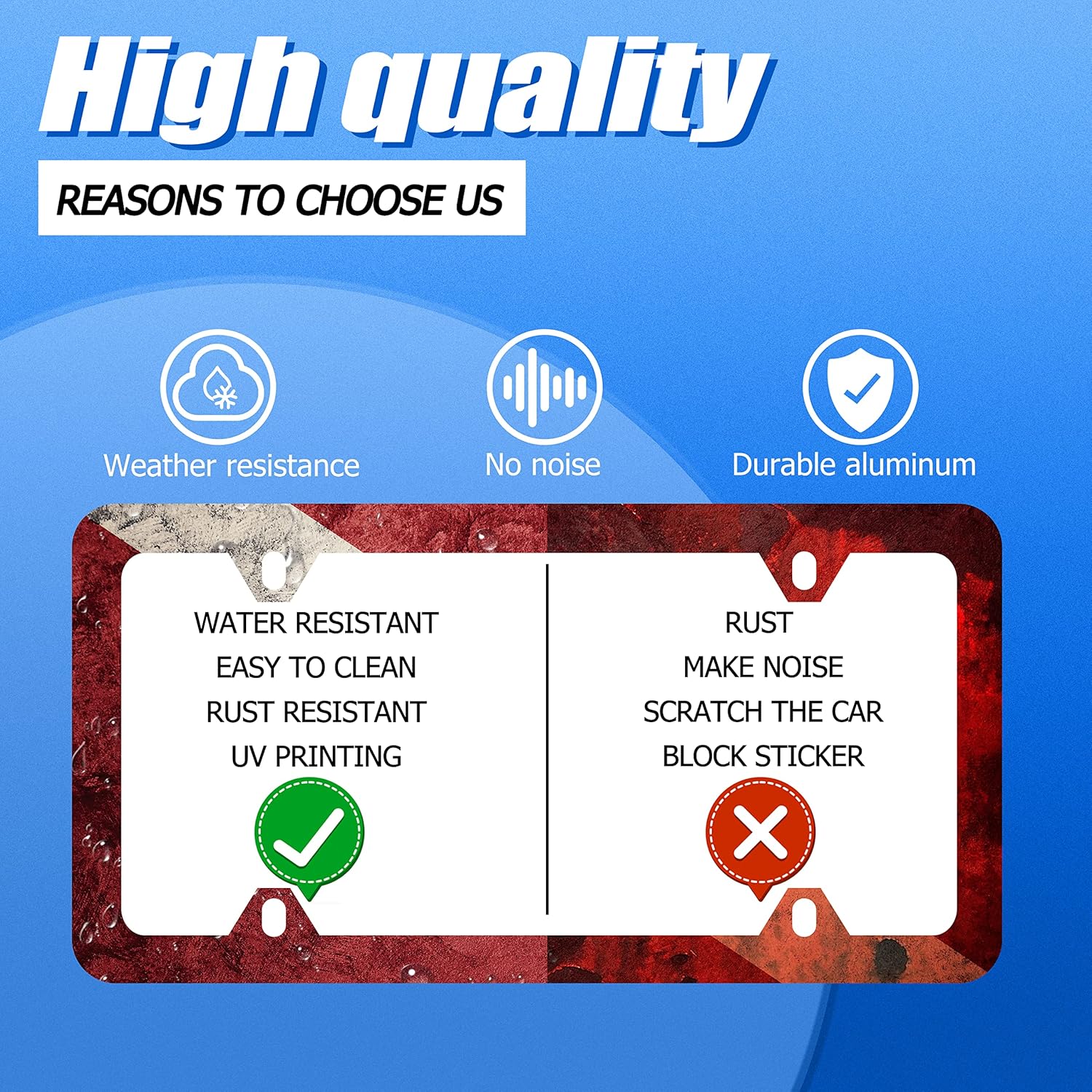 - Design:Use Advanced digital printing Protects license plate frames from Whether it's a car wash, heavy rain or hot weather, it still looks brand new,Let your car still be unique and stylish while driving on the road