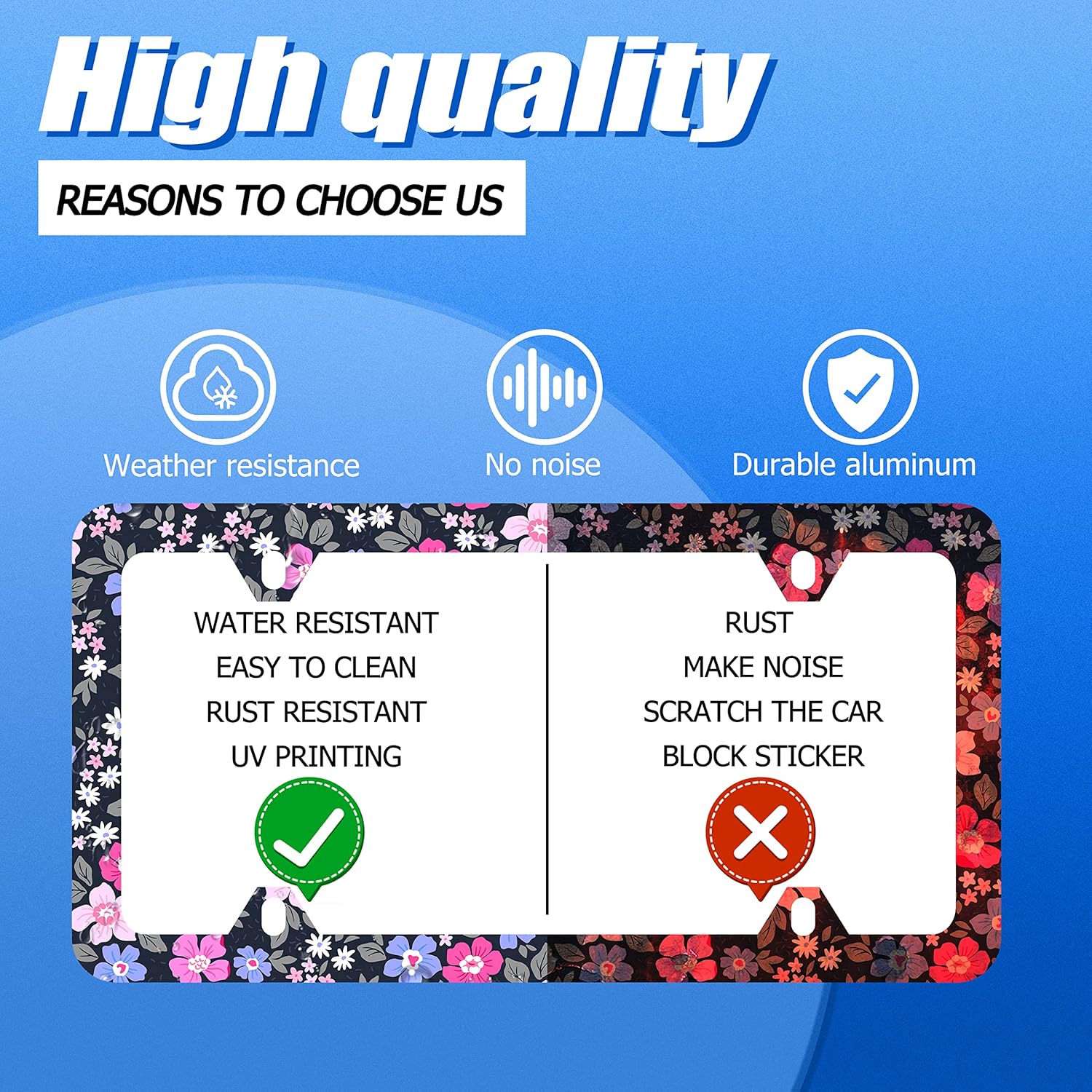 - Design:Use Advanced digital printing Protects license plate frames from Whether it's a car wash, heavy rain or hot weather, it still looks brand new,Let your car still be unique and stylish while driving on the road