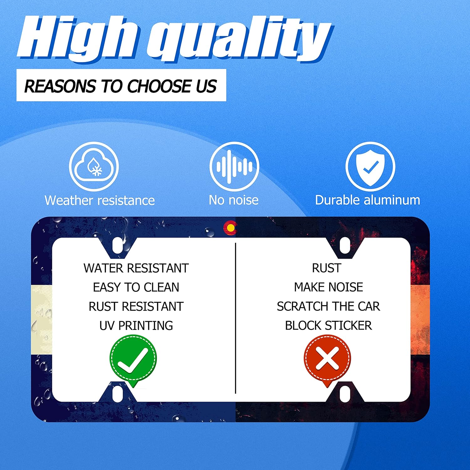 - Design:Use Advanced digital printing Protects license plate frames from Whether it's a car wash, heavy rain or hot weather, it still looks brand new,Let your car still be unique and stylish while driving on the road