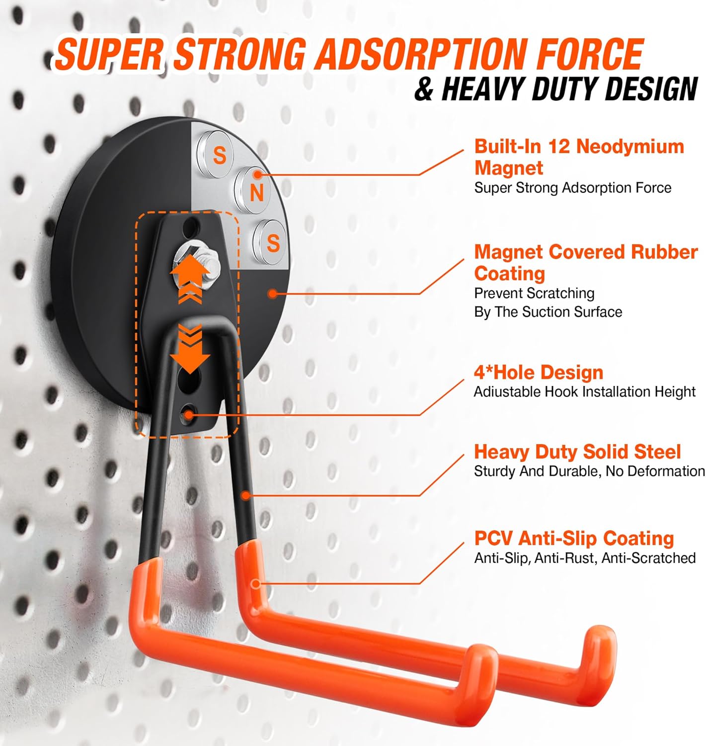 - 🧲[2PCS Magnetic Hooks For Hanging] Large strong magnetic hook present an efficient solution for optimizing vertical storage space within your garage organization system. These multifunctional extra magnet storage hooks are suitable for both indoor and outdoor settings, including garages, gardens, kitchen, warehouse, cruise cabin, utility rooms and indoor/outdoor.
