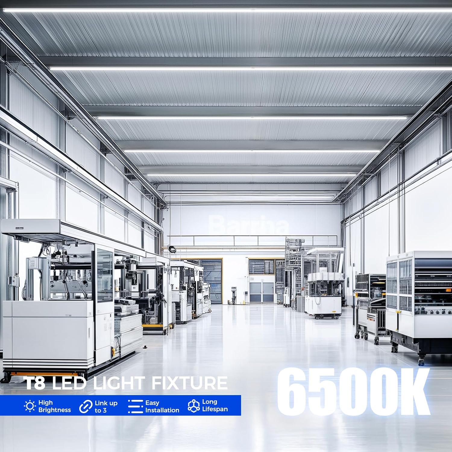 - 6500K Super Bright White: Barrina Led Shop Light upgraded to a higher requirement of 100W and 15,000LM high output. The garage light supports 6500K color temperature, which is closer to natural light and restore more realistic colors, providing professional lighting can meet the higher lighting requirements
