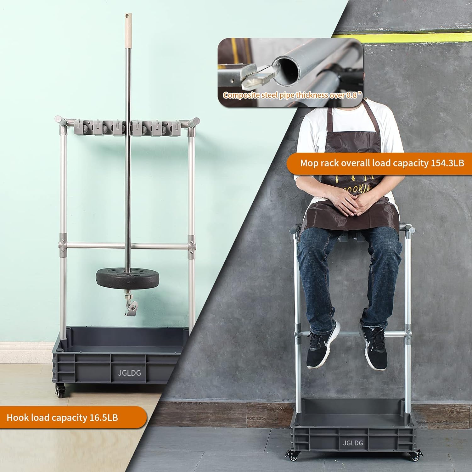 - 1. Versatile Storage: Keep your brooms, mops, and other cleaning tools organized and easily accessible with our mobile broom and mop holder cart.