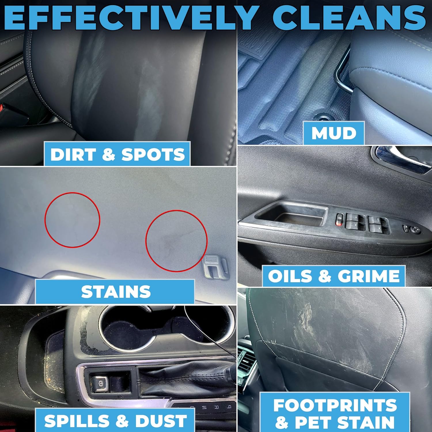 - 🚗ALL-IN-ONE INTERIOR DETAILER: Flowgenix Interior Detailer cleans, restores and protects all surfaces effortlessly. It effectively cleans all surfaces inside your vehicle, including seats and upholstery (leather, vinyl), dashboard (leather, plastic), center console, door panels, trim, air vents, headliner, carpet and floor mats, trunk space, display and navi screens, and more.