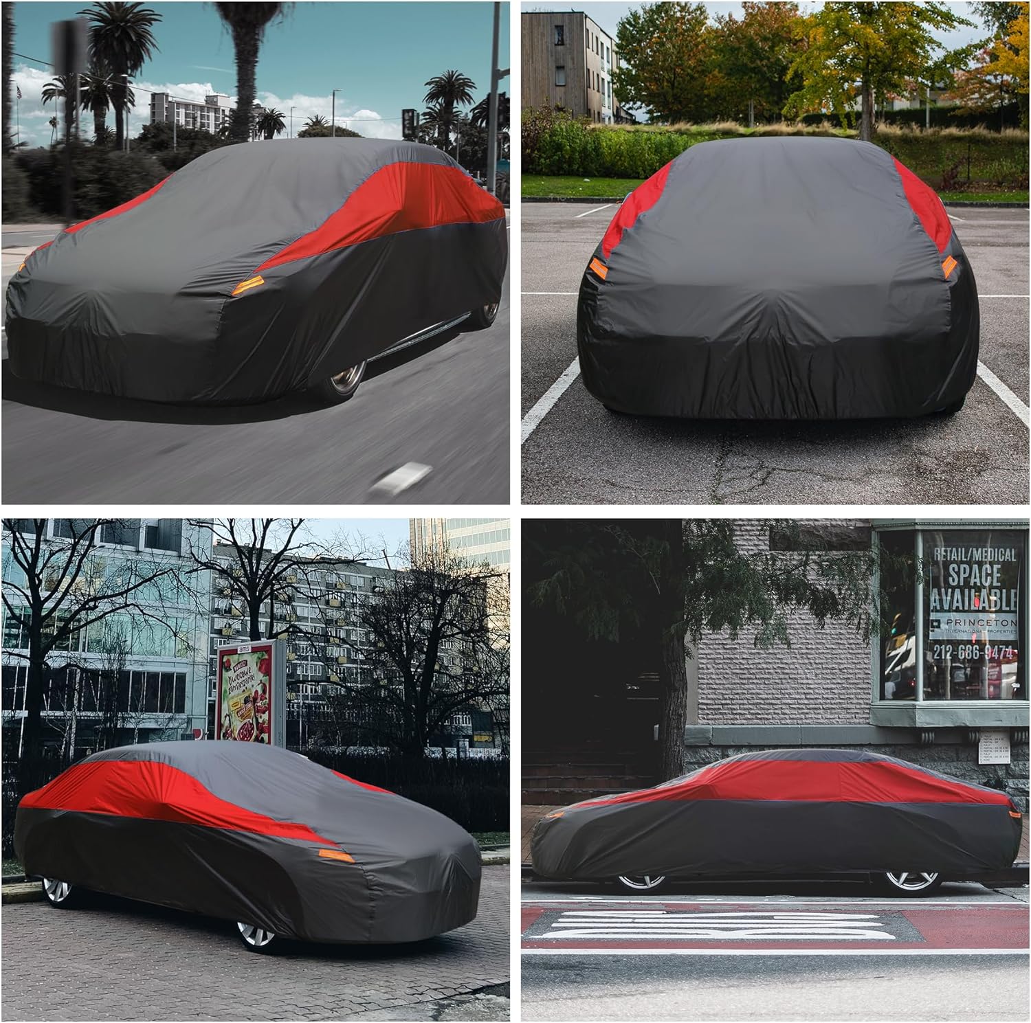 - 【Powerful Functions】1> 4Pcs reflective stripes remind other people in the night, avoid accident in dark environment 2> The elastic hem at the bottom makes the car cover fit the car better 3> Windproof straps can prevent the cover from being blown away by the heavy wind 4> Double stitch technology which makes the fabric stitched tighter&non-tearable, more durable than other similar covers.