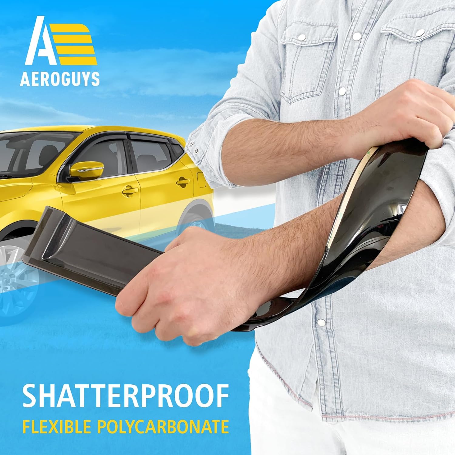 - Incredibly Durable AEROGUYS Auto Window Deflectors – They are made with strong and tough polycarbonate which is clear and scratch-resistant. They also provide UV protection making your ride more comfortable under all weather conditions.