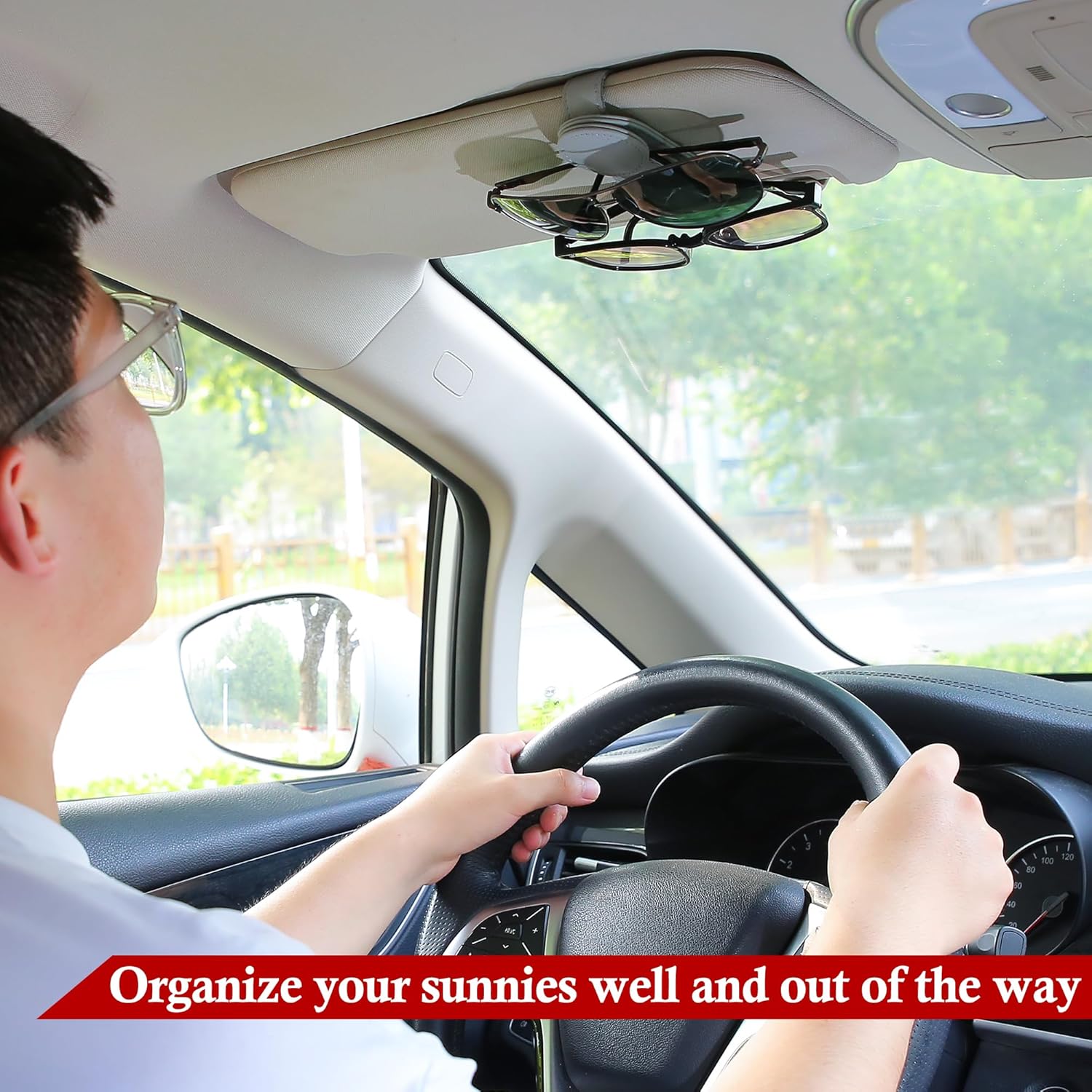 - Strong Magnetic Design Within Reach: This car sunglass holder has 4 strong magnets built-in, which can securely keep eyeglasses from falling while driving; moreover, magnetic closure allows you to get your sunnies easily with one hand whenever you need them