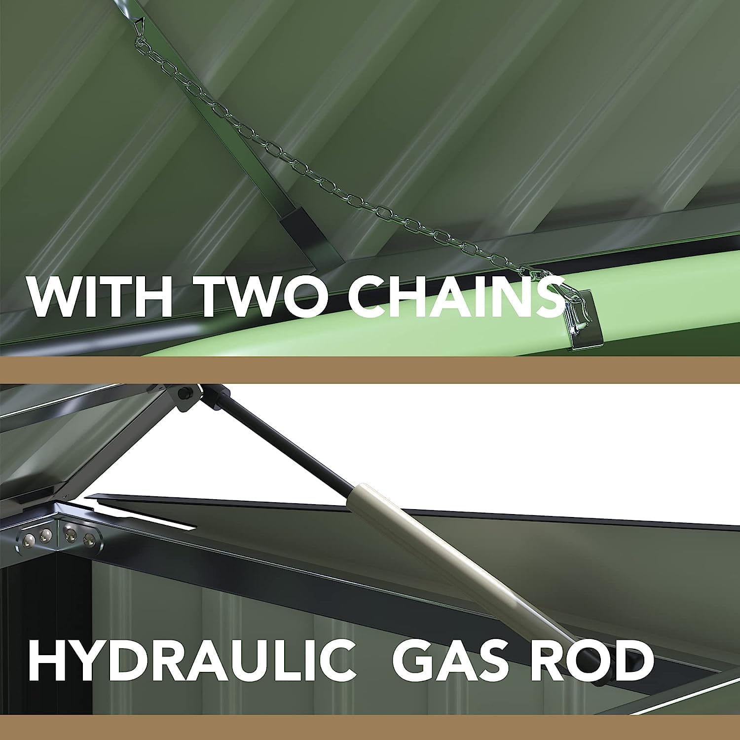 - [2 Chains] The product comes with 2 iron chains, allowing you to open the lid of the storage shed and open the trash can at the same time, which is convenient for dumping garbage.